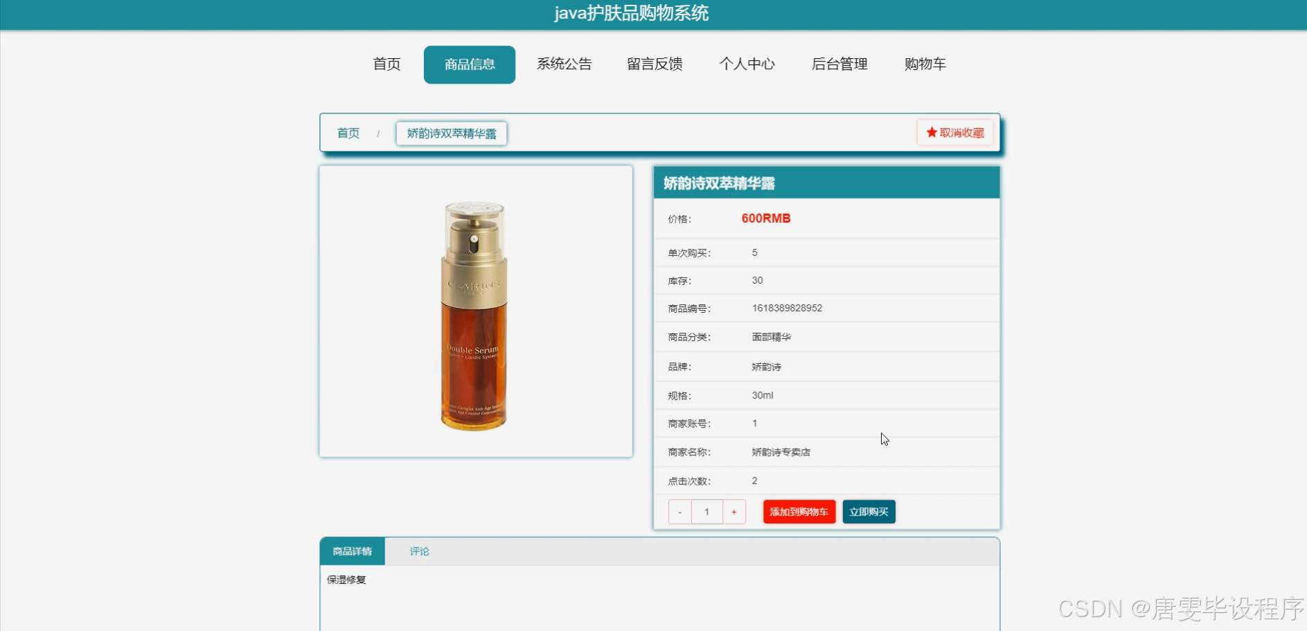 护肤品购物系统的开发不仅有助于提升护肤品市场的交易效率,还能有效促进商家与消费者之间的沟通与互动。通过该系统,商家可以实时更新产品信息、进行库存管理、处理订单和退货申请,从而优化业务流程,降低成本。对于消费者而言,系统提供的商品分类、搜索筛选、购物车、在线支付等功能,能够极大地提升购物体验,满足个性化需求。此外,系统的数据分析功能还能为商家提供市场趋势预测和消费者行为分析,助力精准营销。