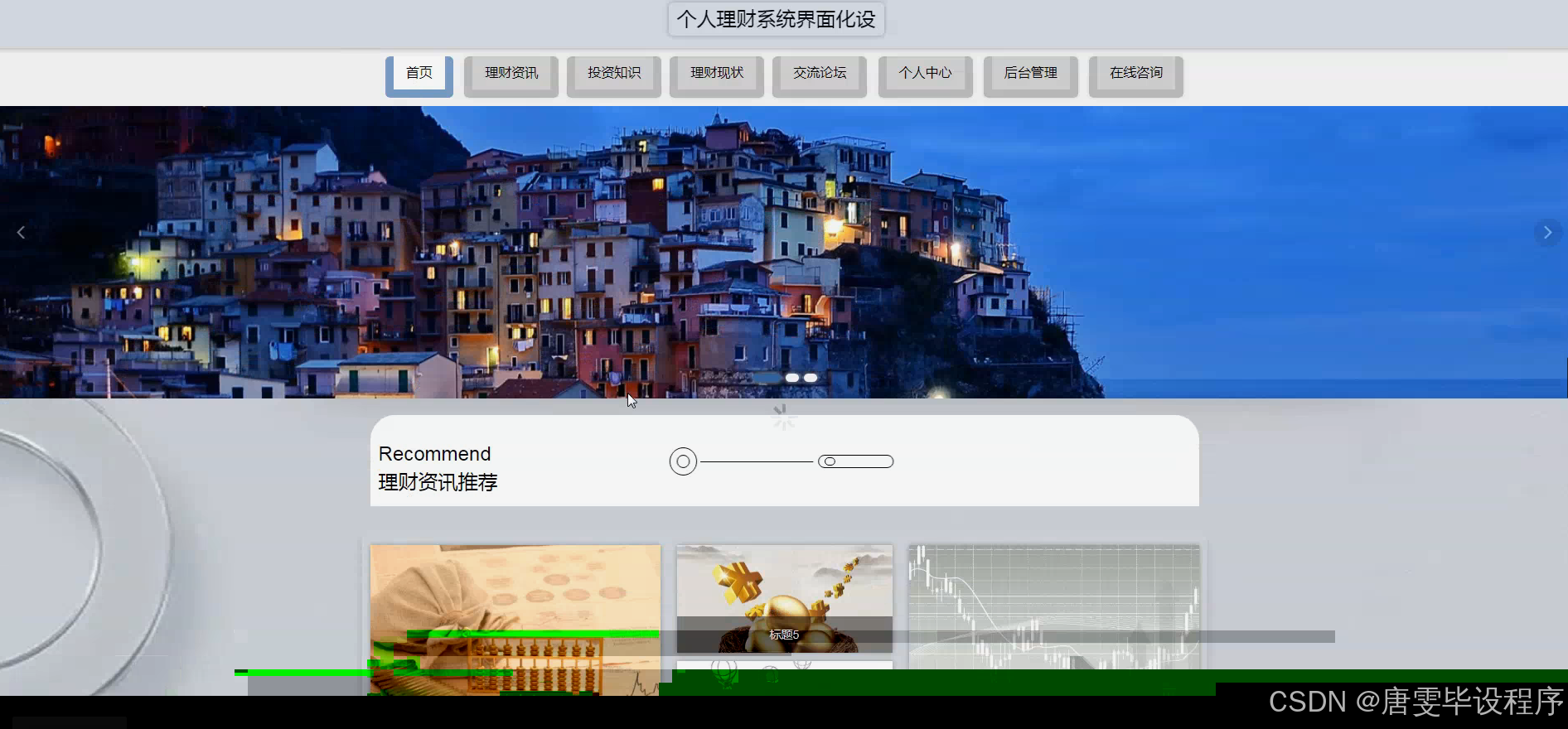 本研究旨在设计并实现一款功能完善的个人理财系统,通过界面化的设计,为用户提供便捷、高效的理财服务。该系统将涵盖用户信息管理、理财资讯推送、理财现状分析、投资知识学习、理财日记记录以及个性化理财建议等多个功能模块。通过这些功能的实现,帮助用户全面掌握个人财务状况,提升理财决策的科学性和准确性,最终实现财富的稳健增长。