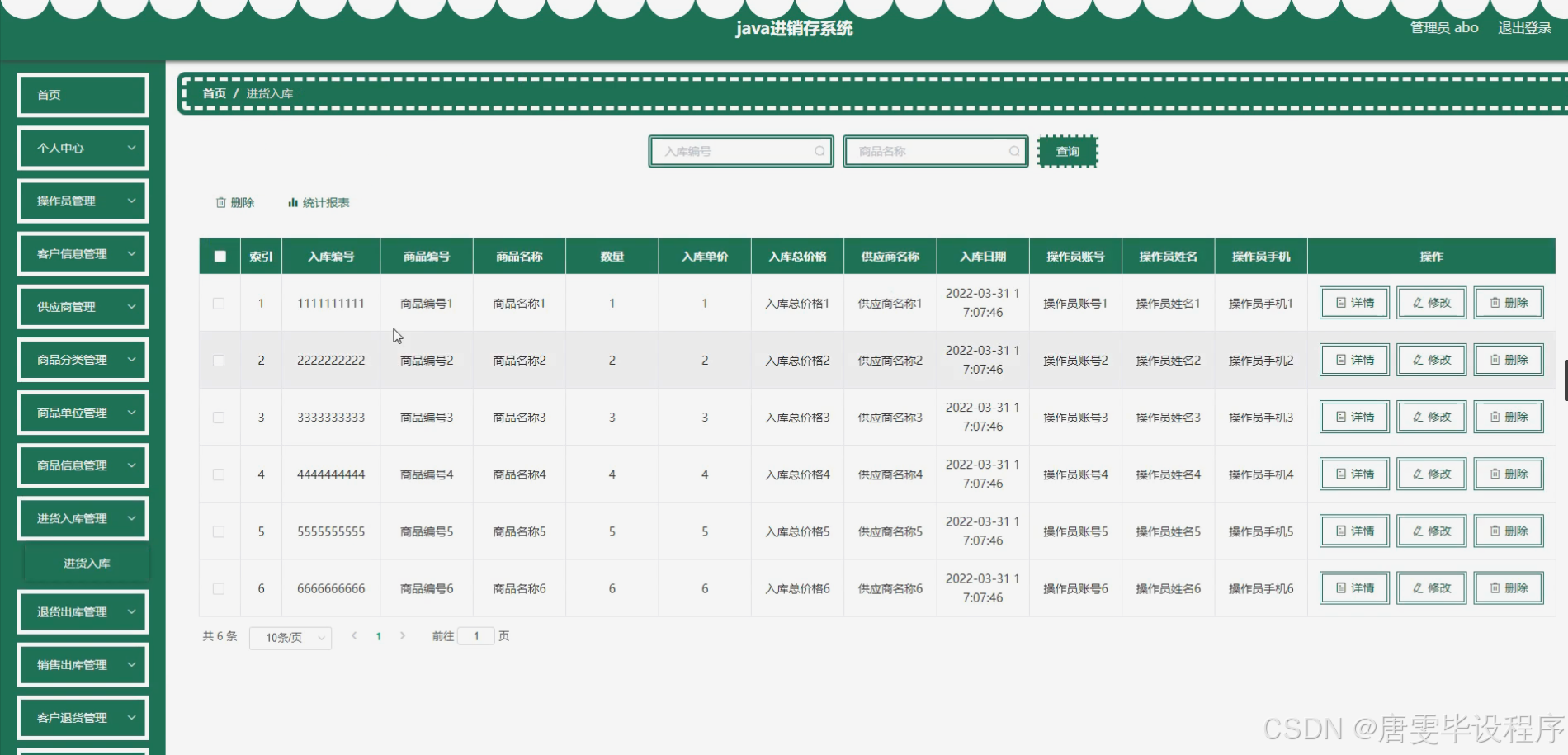 本研究旨在设计并实现一套符合现代企业需求的进销存系统,以提升企业的运营效率和市场竞争力。该系统将涵盖操作员管理、客户信息维护、供应商管理、商品分类与单位设置、商品信息管理、进货入库与退货出库处理、销售出库与客户退货流程、以及商品报损记录等功能模块。通过该系统,企业能够实现采购、库存、销售等业务流程的自动化处理,提高数据处理速度和准确性,为企业决策者提供及时、准确的数据支持,助力企业实现可持续发展。