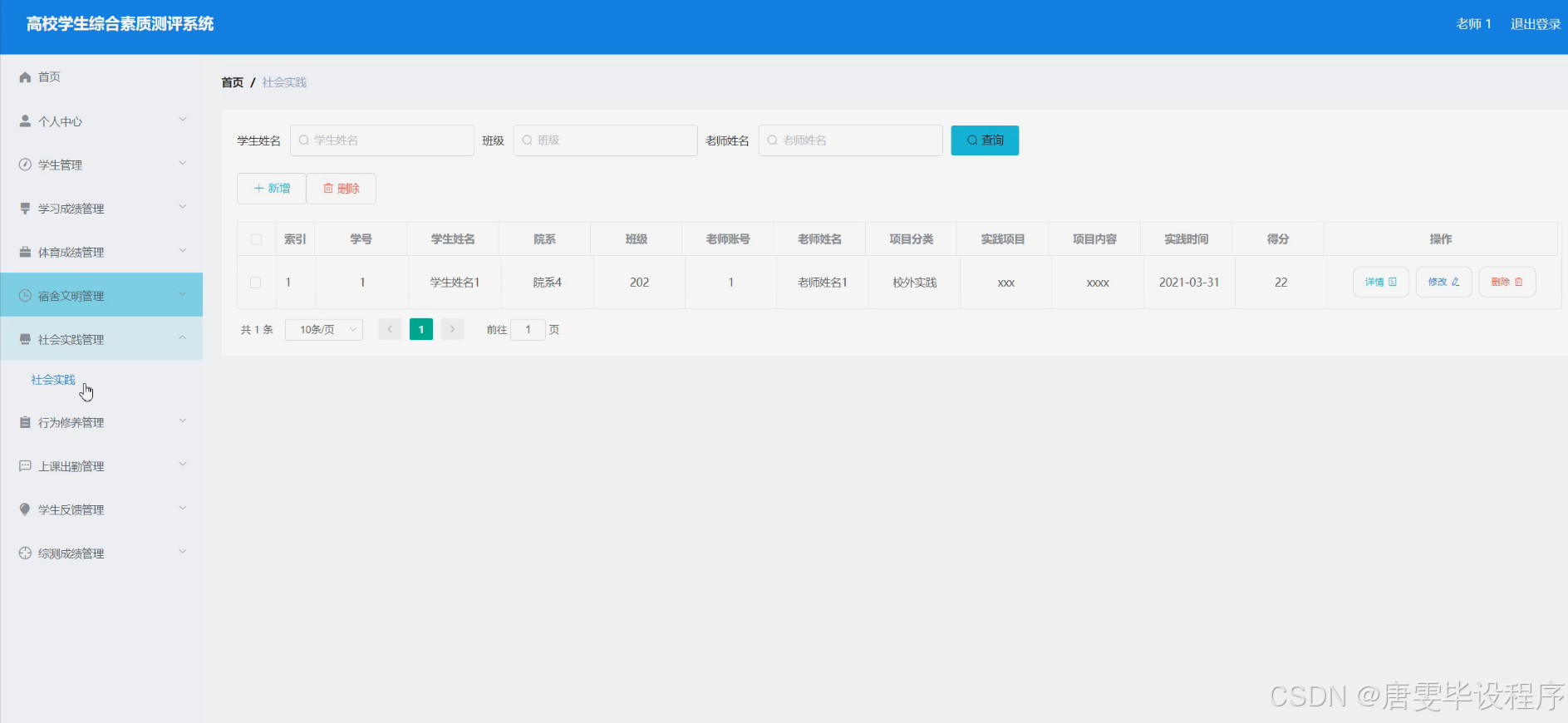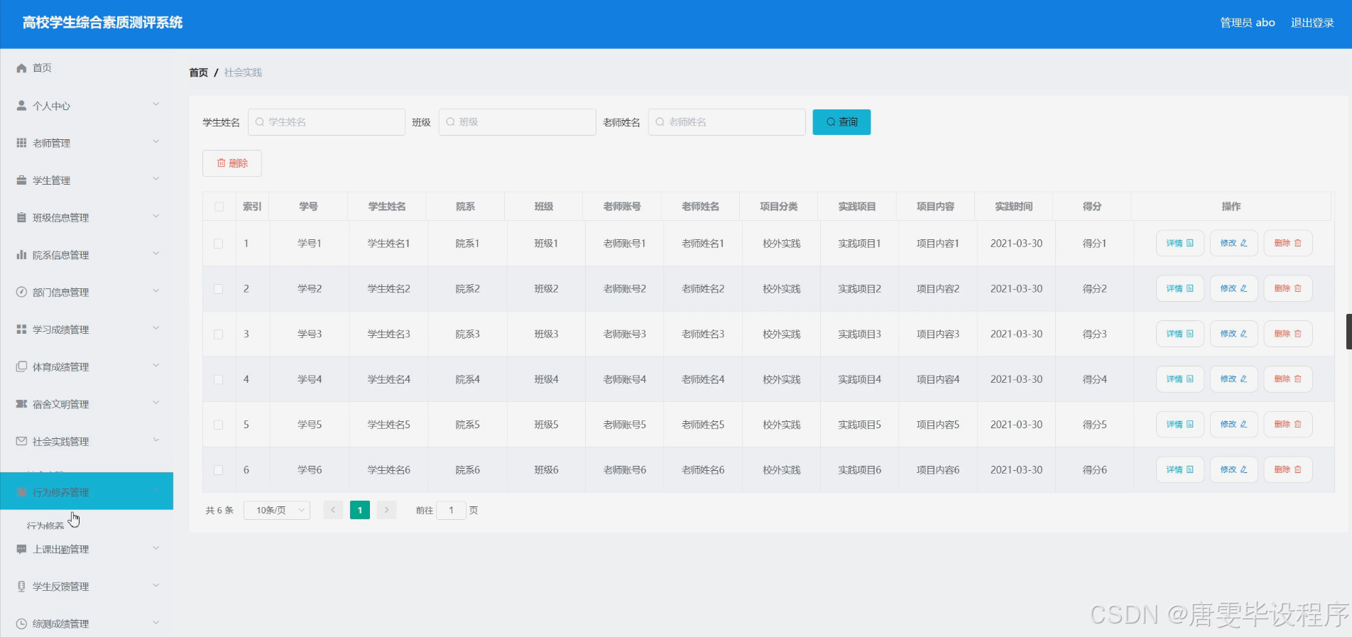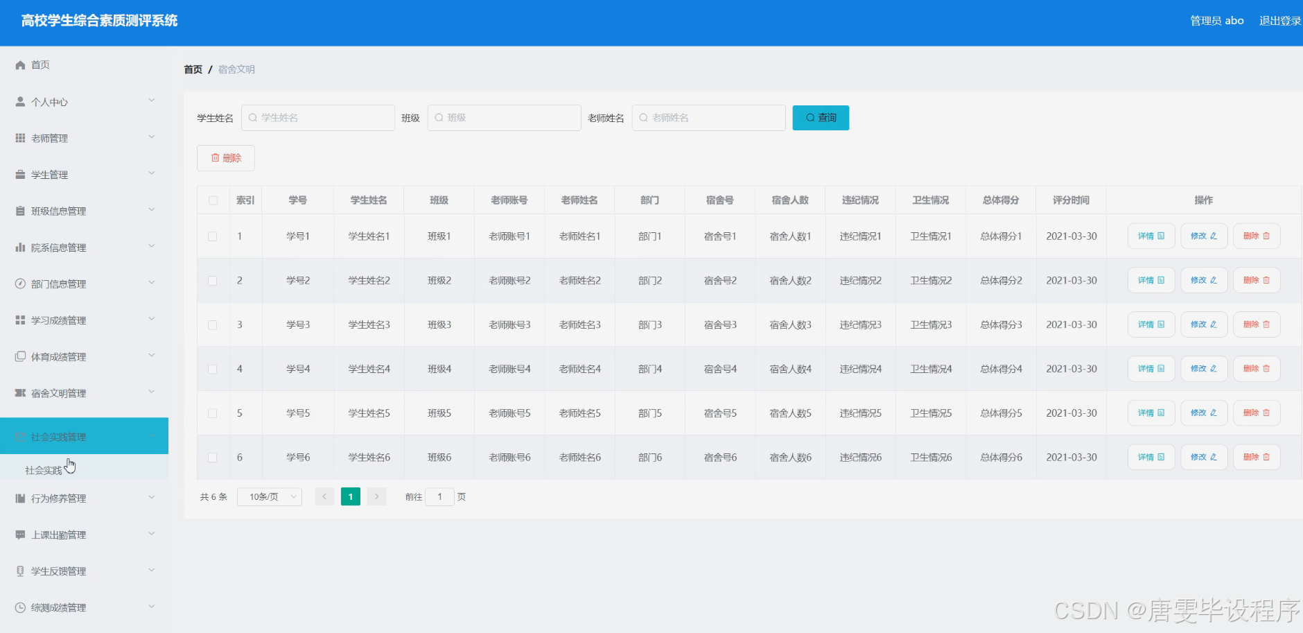 本研究旨在设计并实现一个功能完善、操作便捷的高校学生综合素质测评系统,通过整合学生学业成绩、体育成绩、宿舍文明、社会实践、行为修养、上课出勤等多维度信息,形成全面、客观的学生综合素质评价体系。该系统将服务于高校教育管理的各个环节,为师生提供便捷的信息查询和数据分析功能,助力高校提升教育质量和管理水平,推动学生综合素质的全面提升。