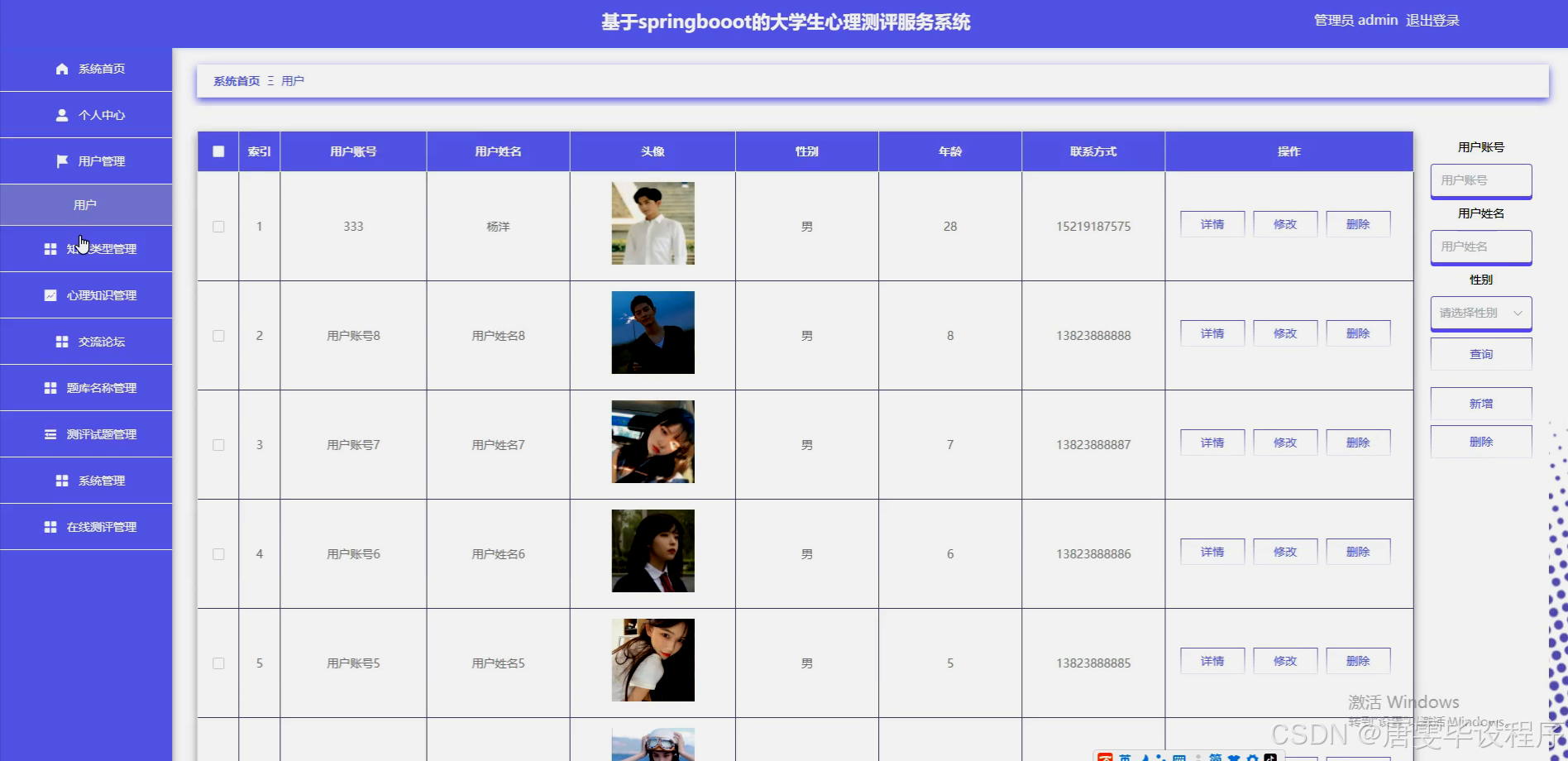 大学生心理测评服务系统的研究不仅具有重要的理论价值,更具有深远的实践意义。从理论层面看,该系统有助于丰富和完善心理学、教育学等相关学科的理论体系;从实践层面看,它能够为高校提供一套科学、有效的心理测评工具,帮助学校及时、准确地掌握学生的心理状况,为制定针对性的心理健康教育和干预措施提供有力支持。此外,该系统还能提升学生的心理健康意识,促进其形成积极、健康的心态。