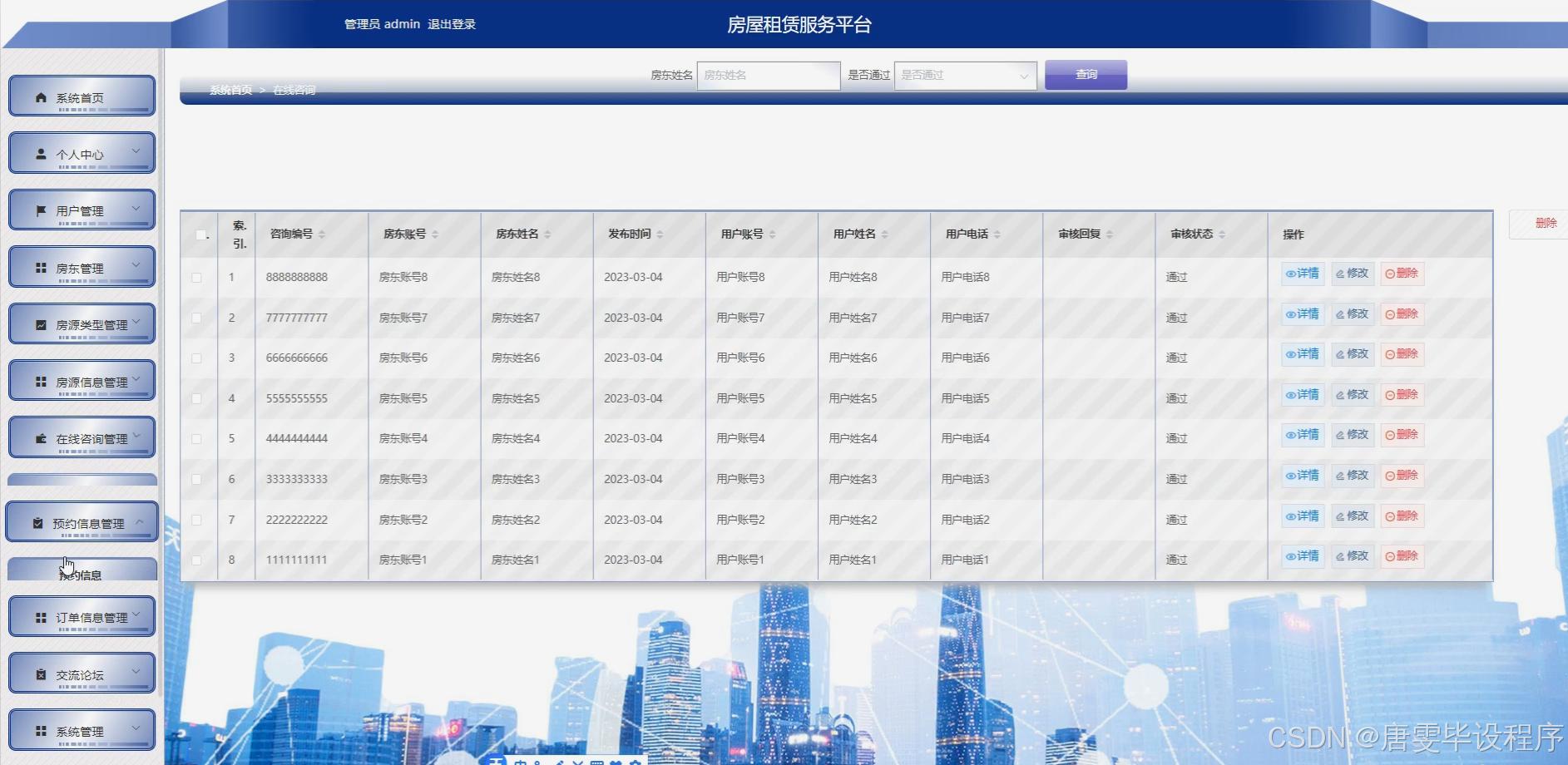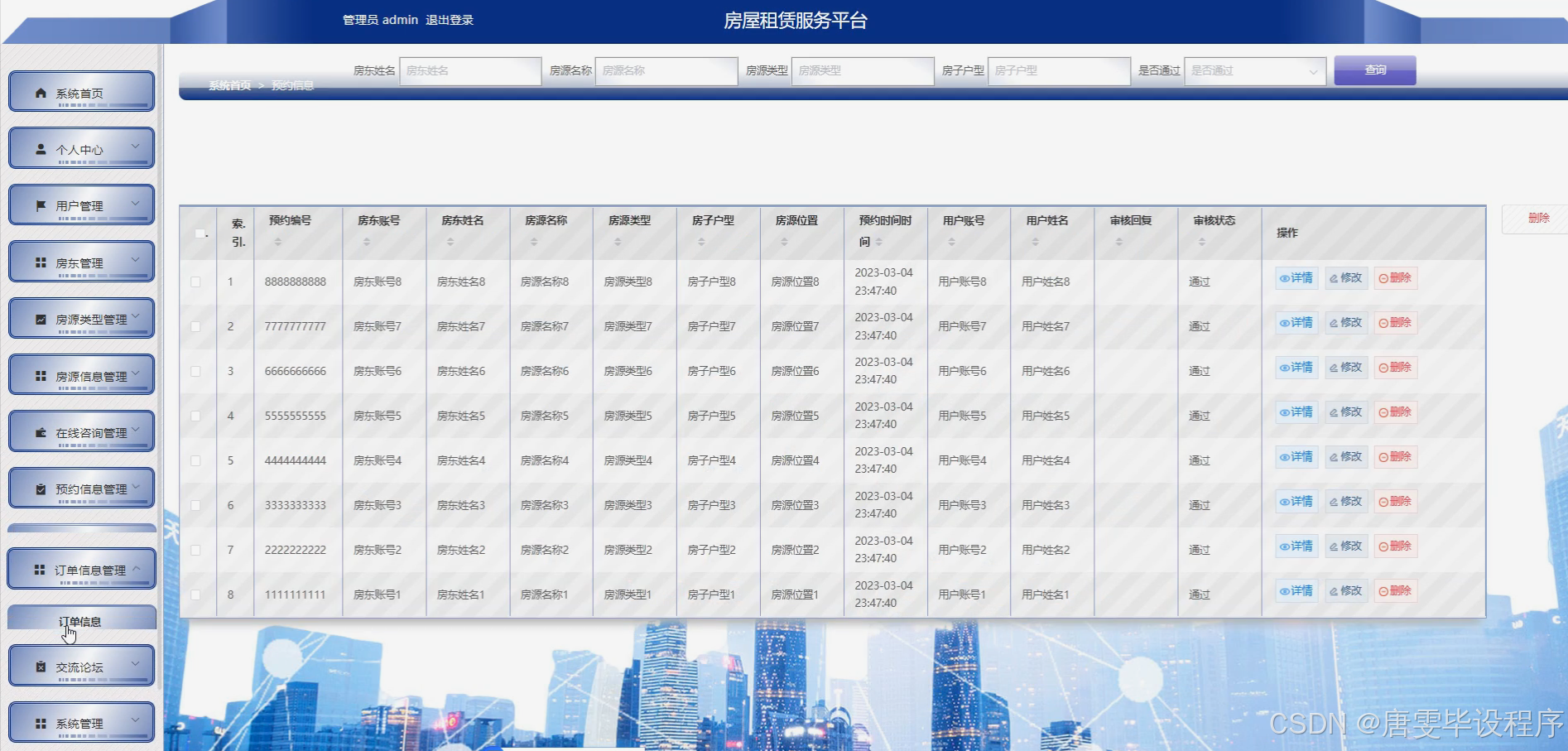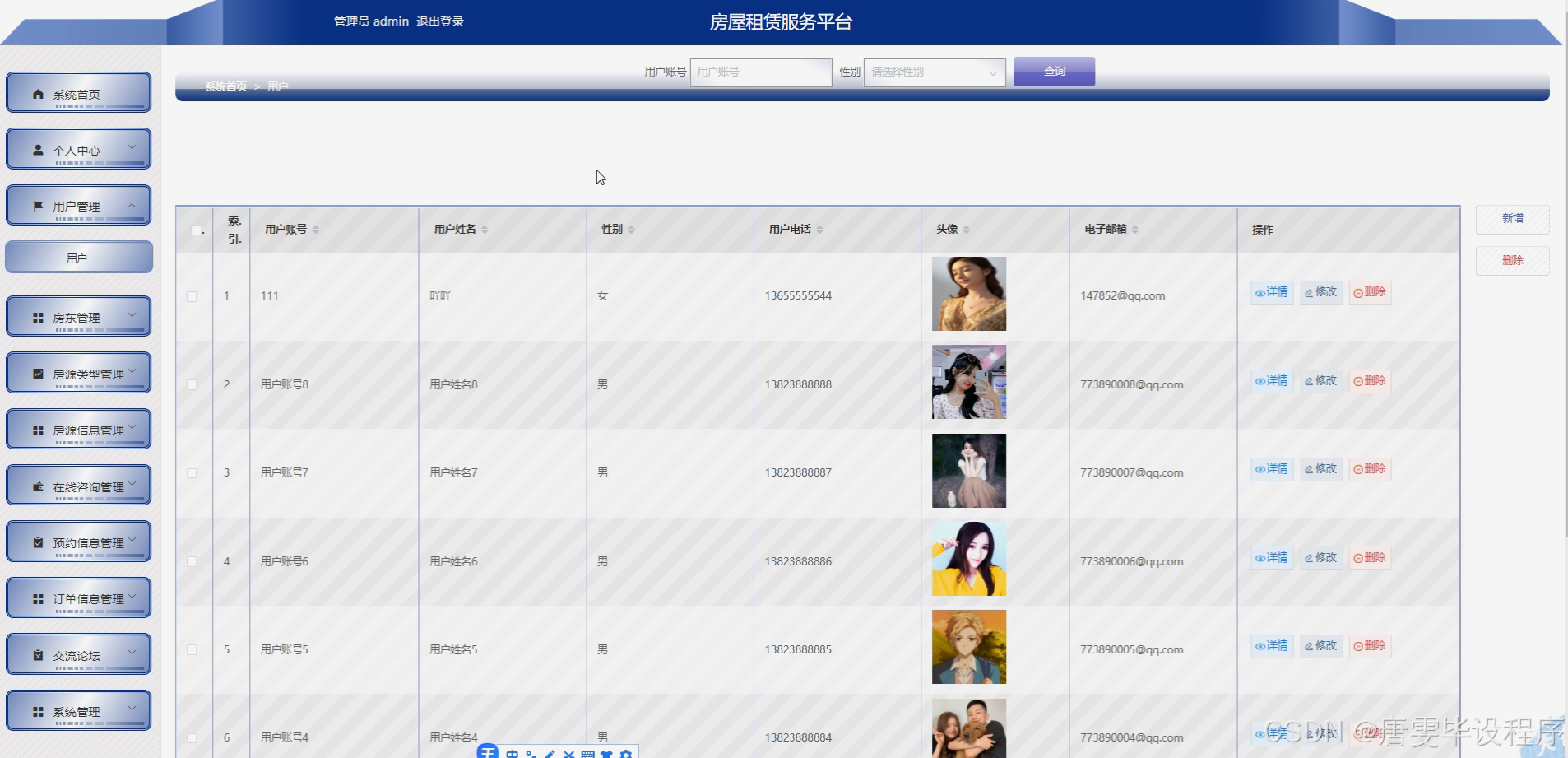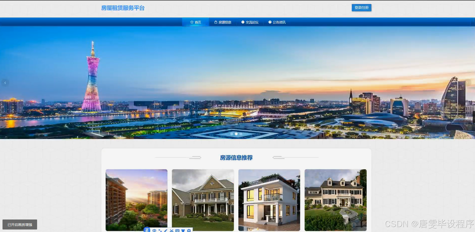 本研究的主要目的是设计并实现一个功能完善、操作便捷的房屋租赁服务平台。该平台应能够全面覆盖房屋租赁市场的关键环节,包括用户管理、房东注册、房源类型划分、房源信息展示、在线咨询交流、预约看房安排以及订单信息管理等功能。通过这一平台,我们期望实现租赁市场的信息化、智能化管理,提高租赁交易的成功率和满意度,为租户和房东提供更加便捷、高效的服务体验。