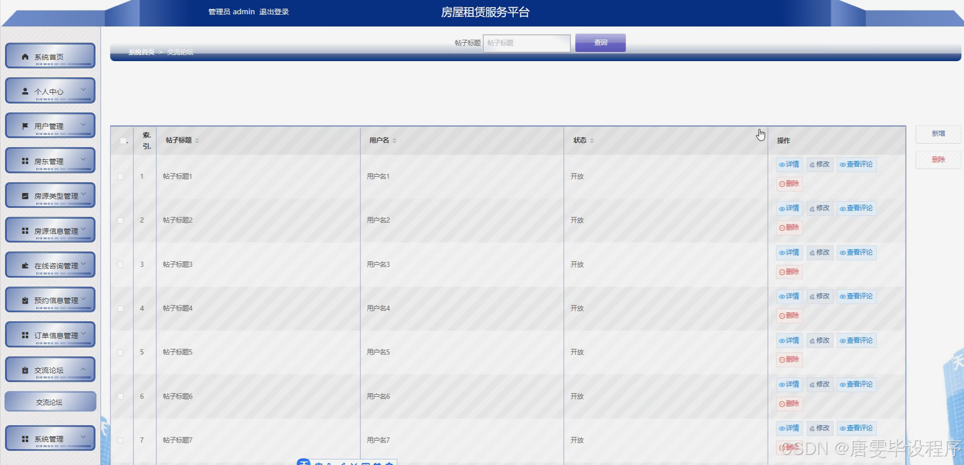 随着城市化进程的加速和人口流动的频繁,房屋租赁市场日益繁荣,成为现代都市生活中不可或缺的一部分。然而,传统的房屋租赁方式往往依赖于中介或个人间的口头协议,这种模式存在着信息不对称、交易不透明、效率低下等问题。特别是在信息爆炸的时代,如何有效地筛选、匹配和管理房源信息,成为了租户和房东共同面临的难题。因此,构建一个集房源展示、信息查询、在线交流和订单管理于一体的房屋租赁服务平台,对于提升租赁市场的效率与透明度,满足广大租房群体的需求,具有重要意义。