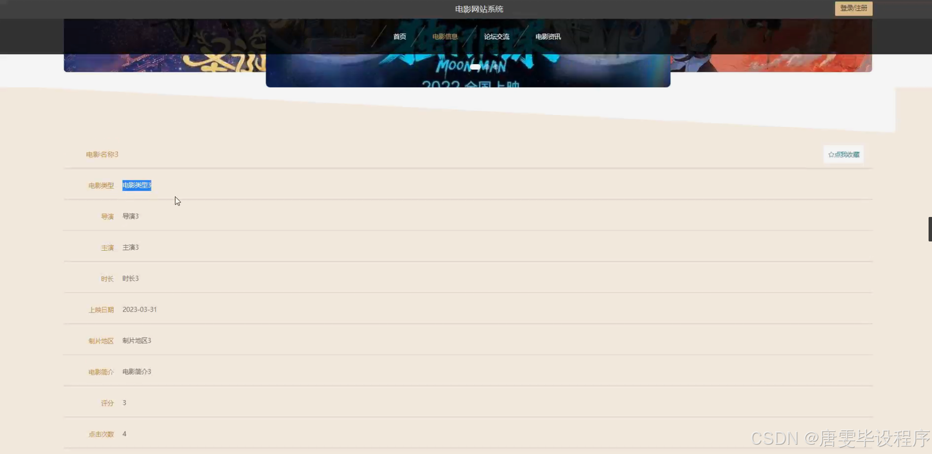 本研究将围绕电影网站系统的核心功能展开,具体包括用户管理模块、电影类型分类模块和电影信息查询模块。在用户管理模块中,系统将实现用户的注册、登录、个人信息管理等功能,为用户提供个性化的服务。在电影类型分类模块中,系统将根据电影的题材、风格等因素对电影进行科学合理的分类,方便用户快速找到感兴趣的电影。在电影信息查询模块中,系统将提供详细的电影信息展示和搜索功能,用户可以通过关键词、演员、导演等多种方式查询电影信息,了解电影的详细信息。此外,系统还将具备用户评论和评分功能,以收集用户的反馈意见,不断优化和提升系统性能。