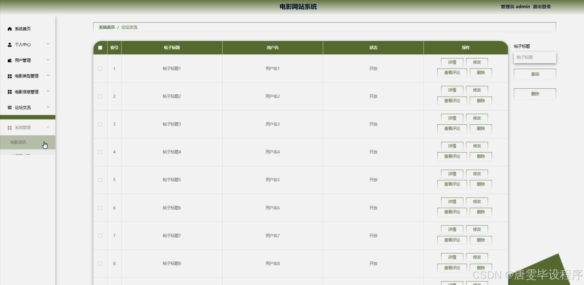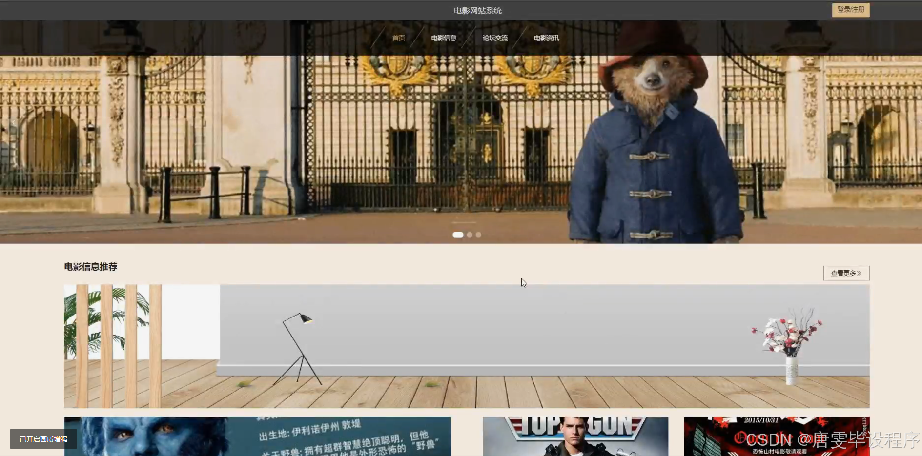 电影网站系统的研究与开发对于促进电影产业的繁荣和发展具有重要意义。通过该系统,用户可以随时随地浏览和搜索自己感兴趣的电影,了解电影的类型、导演、演员等详细信息,甚至可以在线观看或下载影片。这不仅极大地丰富了用户的娱乐生活,也为电影制作方提供了一个展示作品、吸引观众的广阔平台。此外,该系统还能通过数据分析等功能,为电影产业的决策者和投资者提供有价值的市场信息和数据支持。