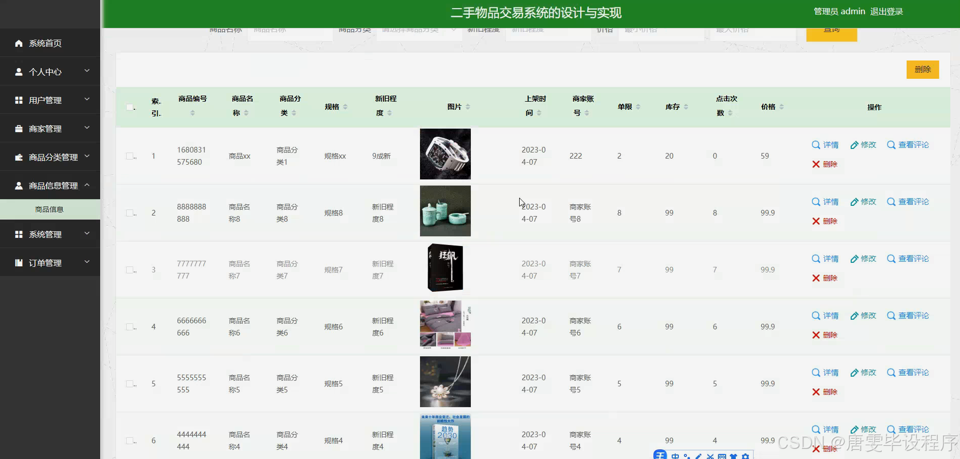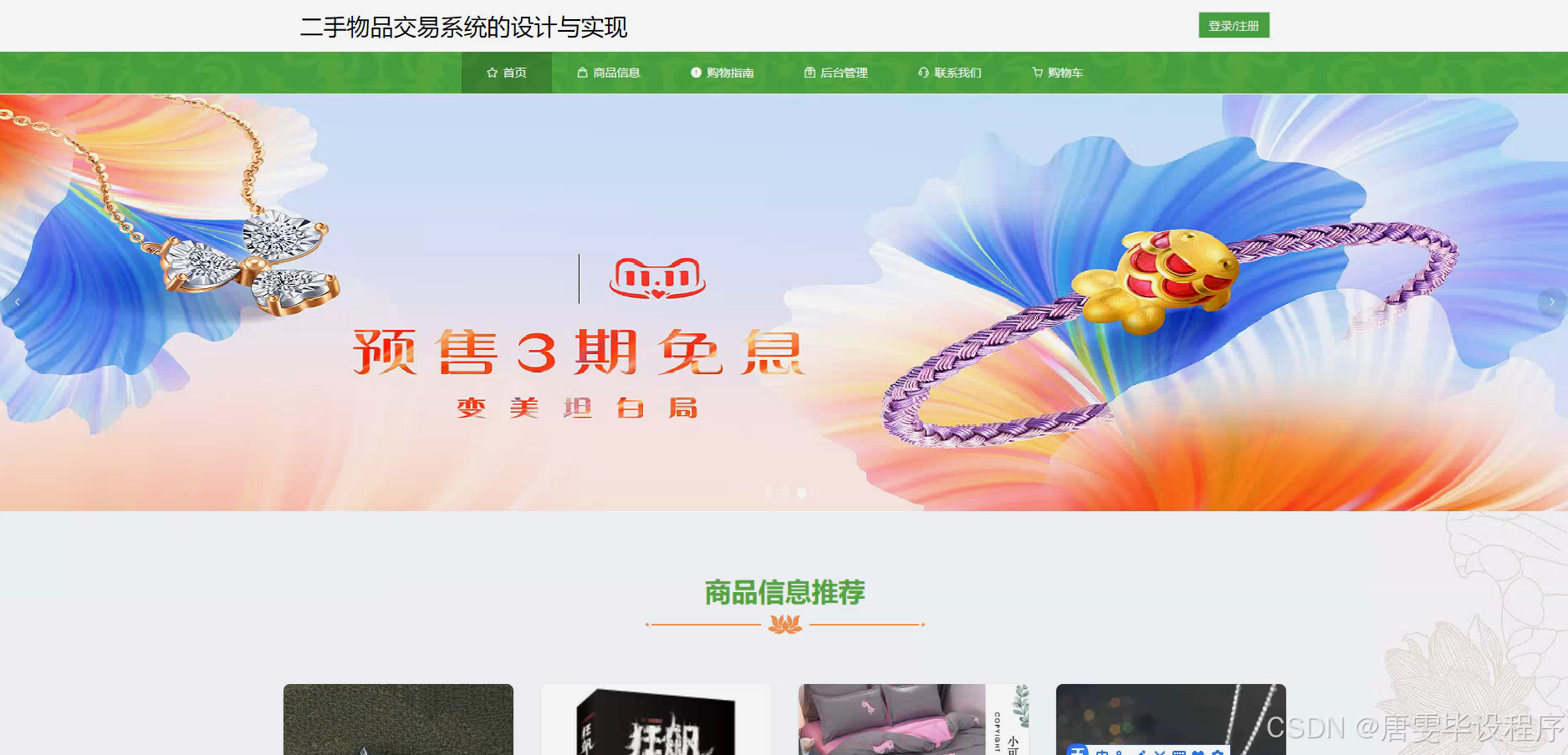 在当今社会,随着经济的快速发展和人们生活水平的不断提升,物质产品的更新换代速度日益加快,大量二手物品因此产生。这些物品中不乏仍处于良好使用状态、具有再利用价值的物品。然而,传统的二手物品交易方式,如跳蚤市场、街头巷尾的买卖,不仅效率低下,而且受限于地域和时间,难以满足广大消费者的需求。互联网的普及为二手物品交易提供了新的平台,使得交易过程更加便捷、高效。因此,设计与实现一个二手物品交易系统,不仅能够促进资源的循环利用,减少浪费,还能为买卖双方提供一个安全、可靠的交易环境,具有重要的现实意义。