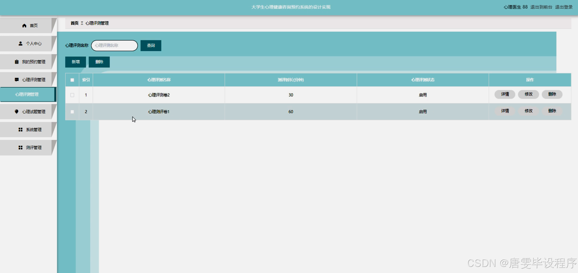 本研究旨在设计并实现一个功能完善、操作简便的大学生心理健康咨询预约系统,以满足学生日益增长的心理健康需求。通过该系统,希望能够构建一个高效、便捷的心理健康服务平台,实现学生、心理医生之间的无缝对接,提高心理咨询的效率和效果,为学生的心理健康保驾护航。