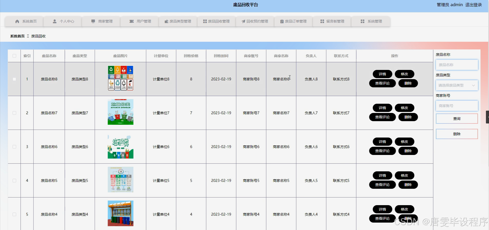 随着工业化进程的加速和消费模式的转变,废品产生量急剧增加,给环境带来了巨大压力。传统的废品回收方式往往效率低下,信息不透明,导致大量可回收资源被浪费。同时,废品堆积不仅占用土地资源,还可能引发环境污染问题。在这样的背景下,构建一个高效、便捷的废品回收平台显得尤为重要。该平台旨在通过数字化手段,实现废品的精准分类、快速回收和有效利用,从而推动循环经济的发展,促进资源节约型和环境友好型社会的建设。