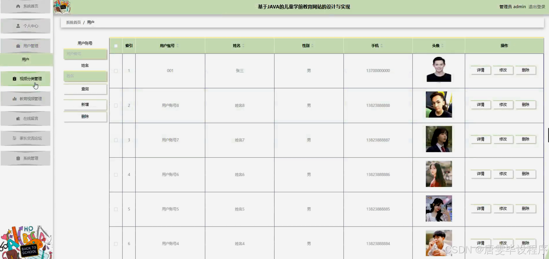 本研究的核心内容围绕儿童学前教育网站的系统功能展开,主要包括用户管理、视频分类以及教育视频三大模块。在用户管理方面,将设计一套完善的用户注册、登录及权限管理机制,确保用户信息的安全性和隐私保护。视频分类模块将依据儿童教育需求,科学划分视频类别,如语言启蒙、数学逻辑、科学探索、艺术培养等,便于用户快速定位所需内容。教育视频模块则是网站的核心资源,将精选国内外优秀的学前教育视频资源,注重内容的科学性、趣味性和教育价值,同时,引入智能推荐算法,根据用户的学习历史和兴趣偏好,提供个性化的视频推荐服务。通过这些功能模块的设计与实施,旨在构建一个功能强大、内容丰富的儿童学前教育网站,为儿童的健康成长提供有力支持。