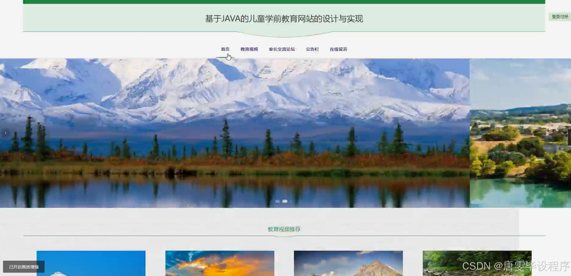 本研究旨在设计并实现一个功能完善的儿童学前教育网站,旨在通过整合优质教育资源,为儿童提供一个寓教于乐的学习环境。该网站将注重用户体验,确保界面友好、操作简便,同时,通过丰富的视频分类和精选的教育视频,满足不同年龄段儿童的学习需求,促进他们的全面发展。此外,研究还将探索如何利用技术手段提高网站的互动性和个性化服务水平,以期在学前教育领域实现创新应用。