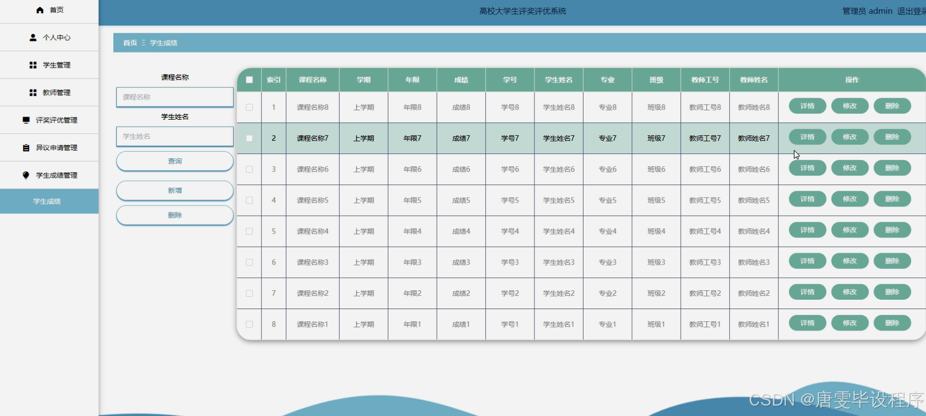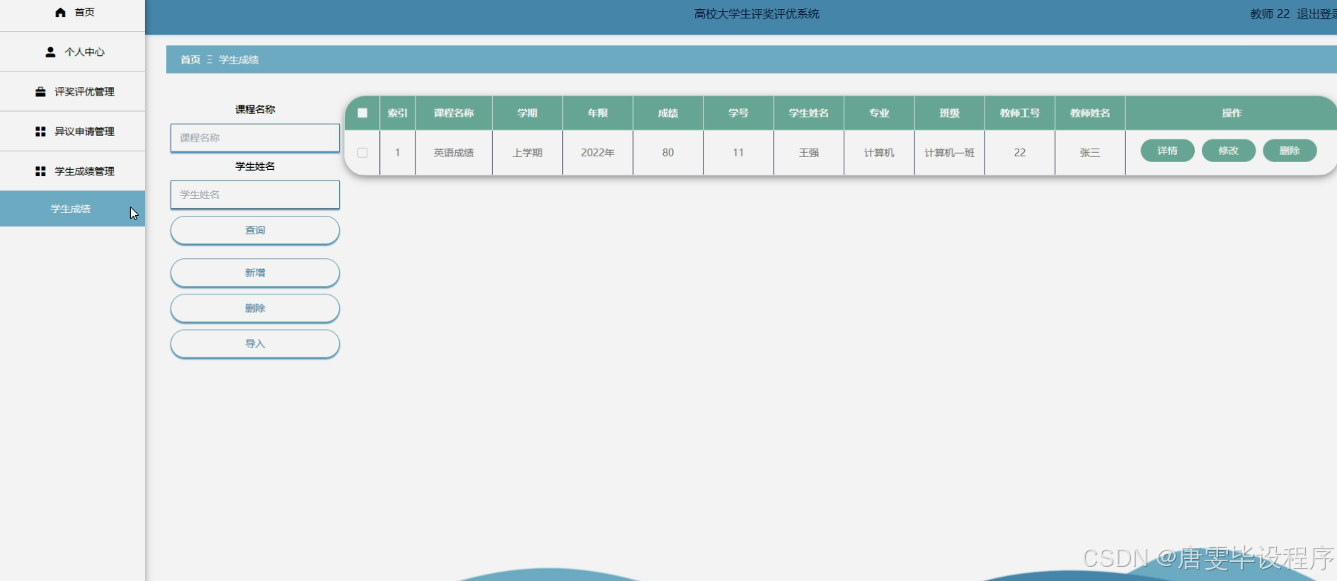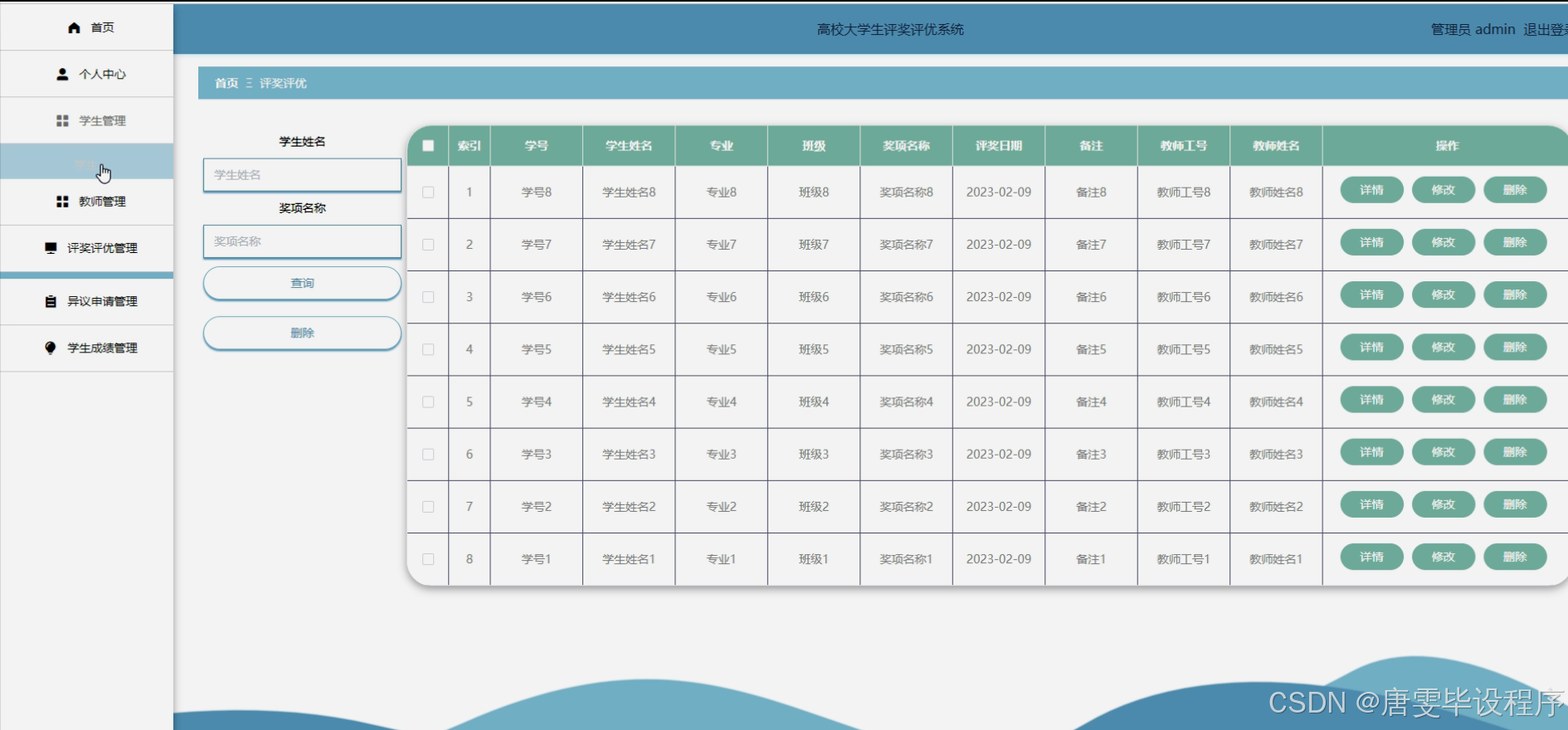 本研究将围绕高校大学生评奖评优系统的设计与实现展开,具体包括以下几个核心功能模块的开发: