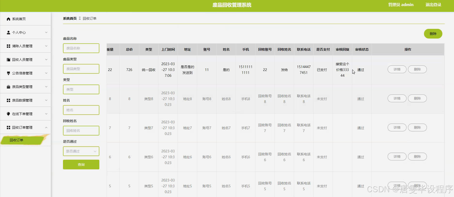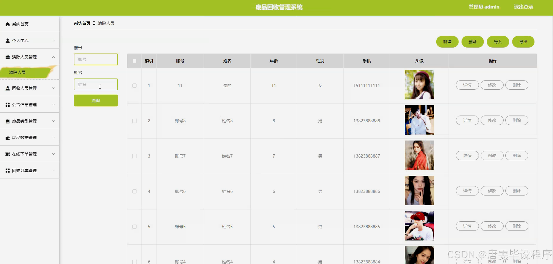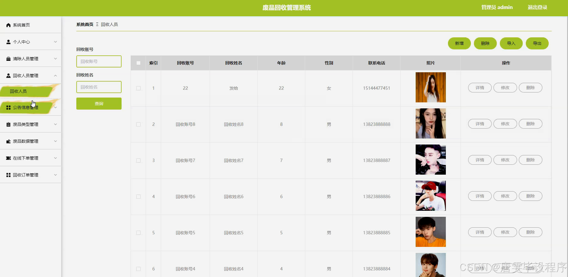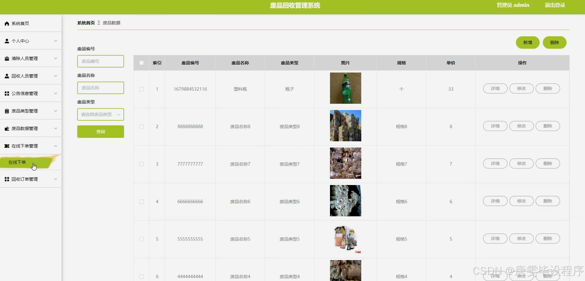 随着社会的快速发展和工业化进程的加速,废品产生量日益增加,给环境带来了巨大压力。传统的废品回收方式存在诸多弊端,如信息不透明、回收效率低下、资源浪费严重等。这些问题不仅影响了资源的循环利用,也对生态环境造成了不可逆转的损害。因此,构建一个高效、透明、智能化的废品回收管理系统显得尤为重要。该系统旨在通过信息化手段,实现废品回收的全程跟踪与管理,提高回收效率,减少资源浪费,促进可持续发展。