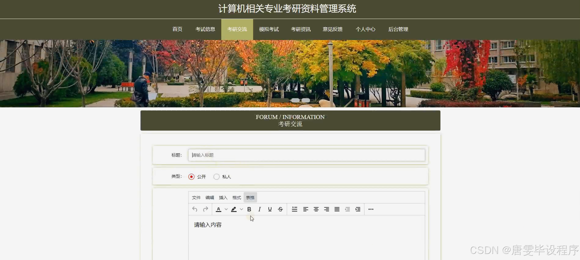 随着高等教育的普及和就业竞争的加剧,越来越多的计算机相关专业学生选择考研以提升自身竞争力。然而,考研过程中涉及的大量资料和信息管理成为考生面临的一大挑战。传统的纸质资料管理和信息记录方式不仅效率低下,而且容易出错。同时,市场上现有的考研资料管理系统大多功能单一,无法满足考生对多样化、个性化资料管理的需求。因此,开发一个功能全面、操作简便的计算机相关专业考研资料管理系统显得尤为重要。该系统旨在通过信息化手段,帮助考生高效管理考研资料,提升备考效率。