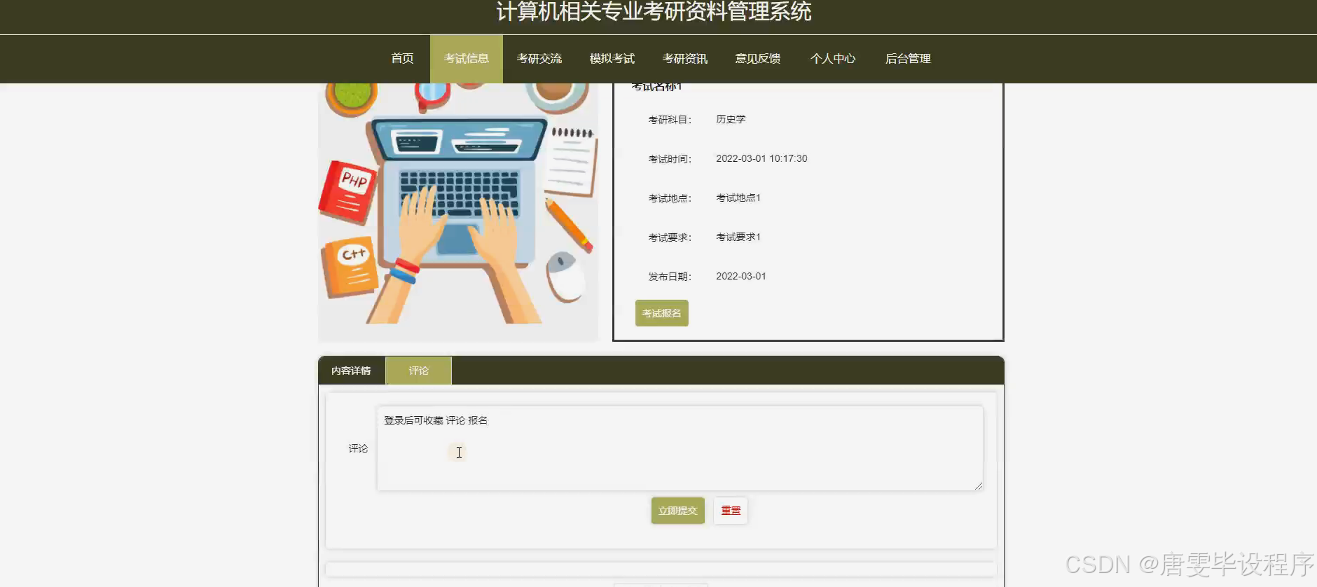 本研究将围绕计算机相关专业考研资料管理系统的设计与实现展开,具体研究内容包括:用户管理模块,用于实现用户注册、登录、个人信息管理等功能;考研科目管理模块,用于展示不同科目的考研大纲、参考书目等信息;考试信息管理模块,用于发布最新的考试通知、政策解读等内容;考试报名模块,提供在线报名服务,简化报名流程;以及考研资料管理模块,用于上传、下载、分享各类考研资料,如真题、笔记、视频教程等。通过这些功能模块的设计和实现,构建一个全面、实用的考研资料管理系统。