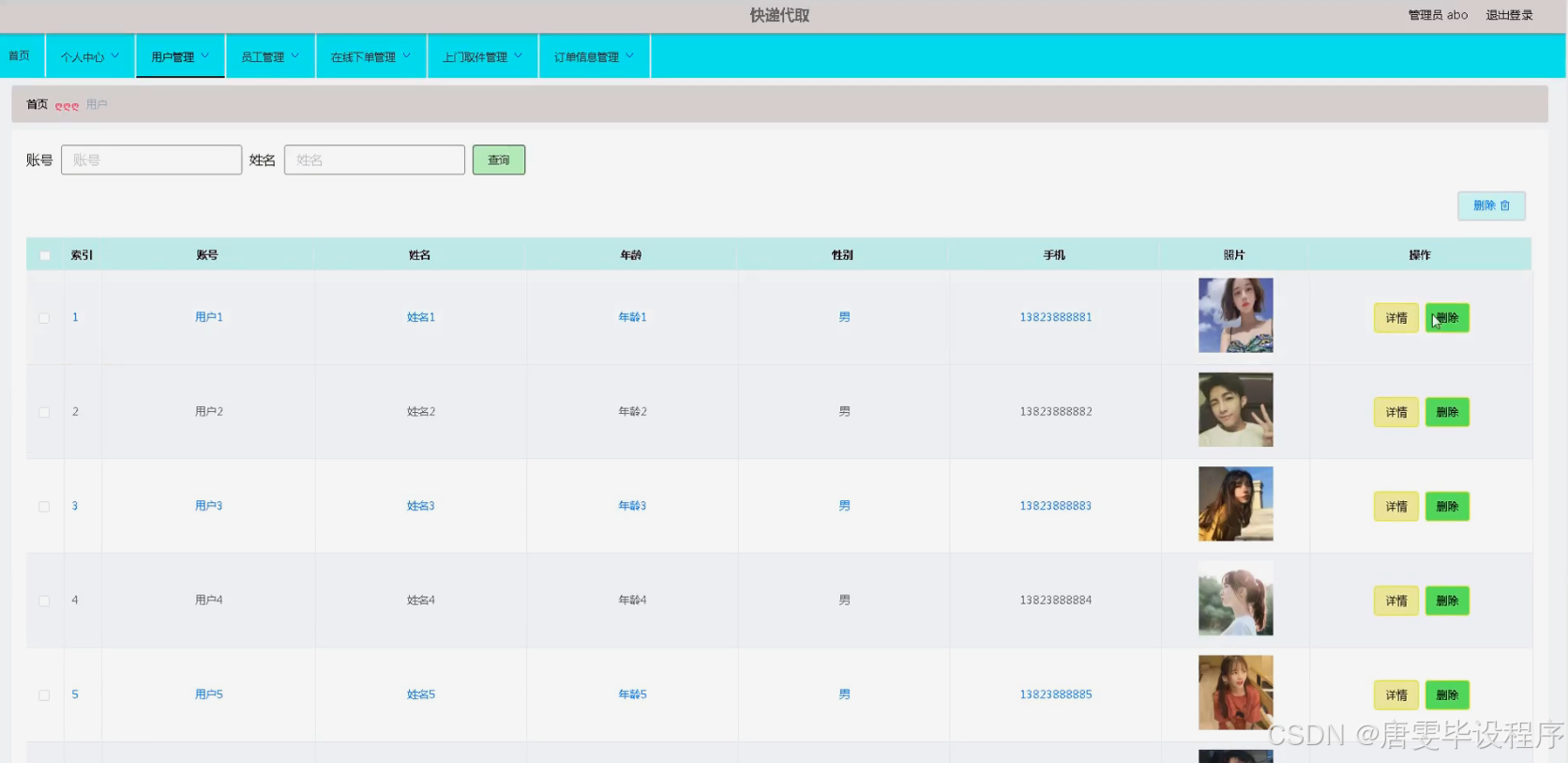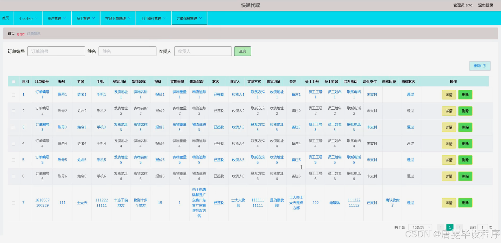 本研究将围绕快递代取系统的核心功能展开,具体包括用户管理、员工管理、在线下单、上门取件以及订单信息管理等功能模块。在用户管理模块,系统将实现用户注册、登录、个人信息维护等功能;员工管理模块则负责员工的招聘、培训、排班以及绩效考核等工作;在线下单模块允许用户通过系统提交寄件或取件需求,并预约服务时间;上门取件模块则根据用户需求,安排员工上门取件,并实时更新订单状态;订单信息管理模块则提供订单查询、追踪以及历史订单查看等功能,确保用户能够随时了解包裹的寄送情况。通过这些功能模块的实现,系统将为用户提供一种高效、便捷的快递代取服务体验。