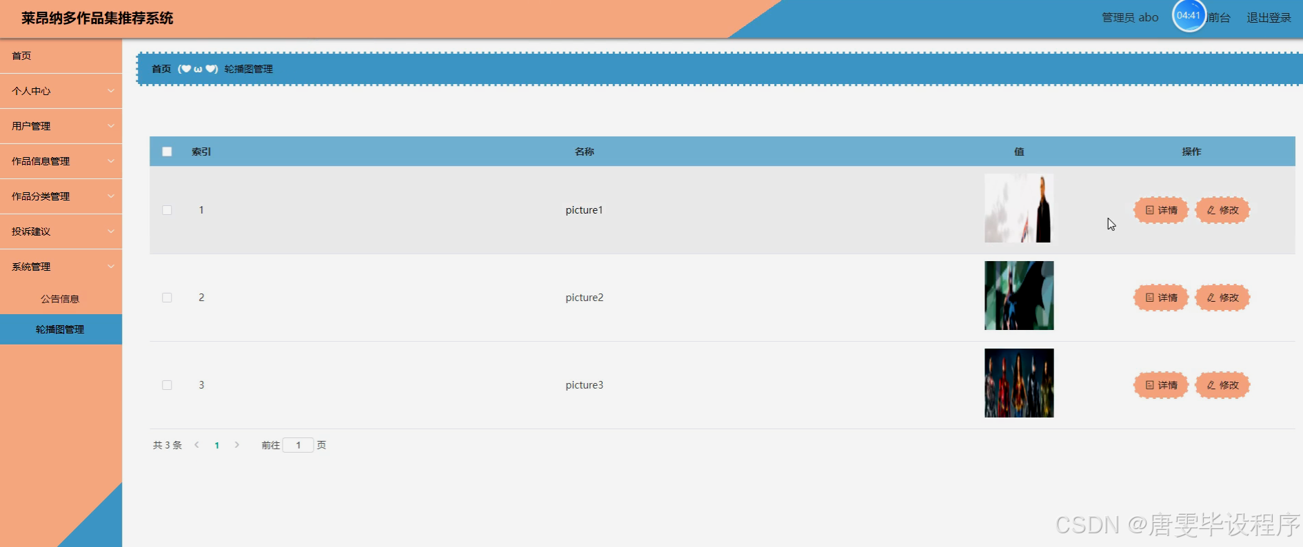 本研究的主要目的是设计并实现一个基于莱昂纳多作品集的推荐系统,该系统应具备用户管理、作品信息管理、作品分类及推荐等功能。通过该系统,影迷可以方便地浏览莱昂纳多的全部作品,并根据个人喜好获得个性化的作品推荐。同时,系统还能为影迷提供作品评价、分享等互动功能,增强影迷的参与感和归属感。通过本研究的实施,我们期望能够为影迷提供一个高效、便捷、个性化的莱昂纳多作品集推荐平台。