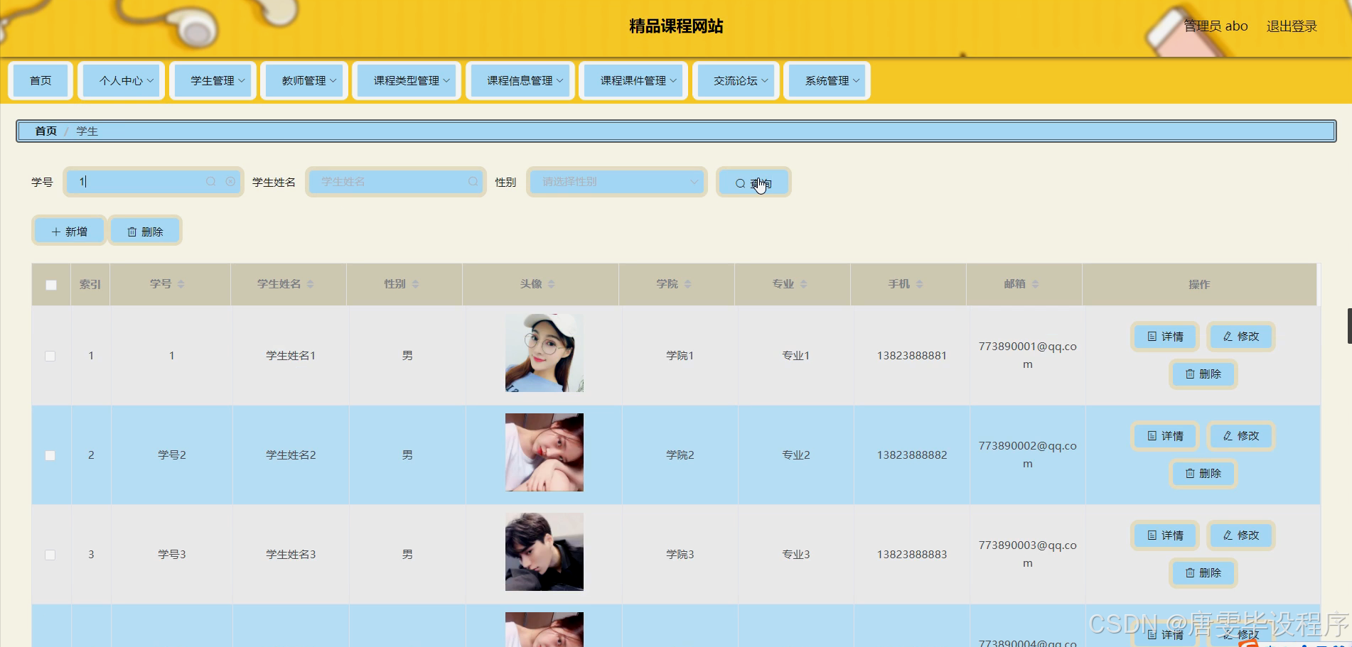 本研究旨在设计并实现一个功能完善的精品课程网站,以满足学生、教师和课程管理的多元化需求。通过该网站,学生可以方便地浏览和下载课程资料、参与在线讨论和测试;教师可以高效地发布教学资源、管理课程和作业;同时,网站还应具备课程类型分类清晰、课程信息展示详尽、课程课件易于获取等功能。通过这些功能的实现,旨在提升学生的学习体验和学习效果,促进教师的教学创新和教学效率提升,为教育信息化的深入发展提供有力支持。