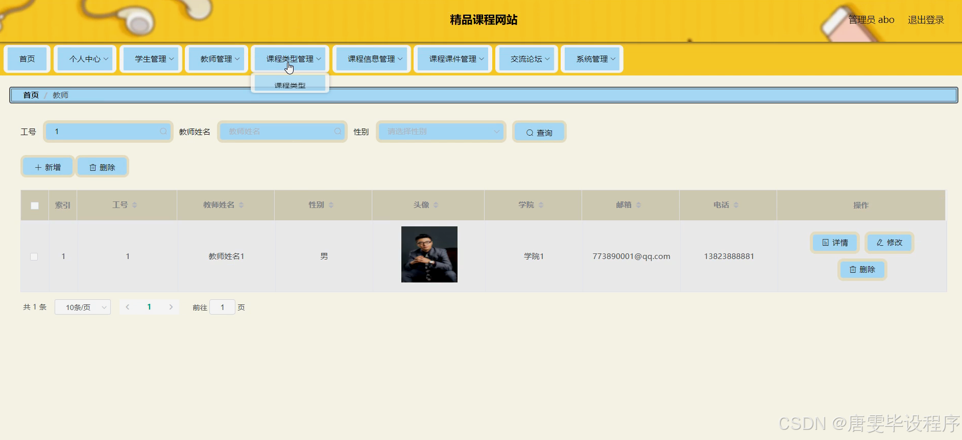 本研究将围绕精品课程网站的系统功能展开,具体包括以下几个方面:一是学生功能模块的设计,包括学生个人信息管理、课程选择、学习进度跟踪、在线测试与答疑等;二是教师功能模块的设计,涵盖教学资源上传与编辑、课程公告发布、作业布置与批改、学生成绩管理等;三是课程类型与课程信息管理模块,用于实现课程分类清晰、课程信息全面展示的功能;四是课程课件管理模块,支持课件的上传、下载、在线预览及版本更新等功能。通过这些模块的设计与实施,确保精品课程网站能够为学生提供便捷的学习途径,为教师提供高效的教学管理手段,为教育资源的优化配置提供有力支持。