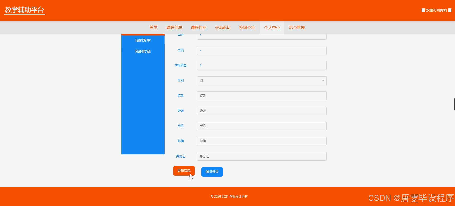 随着信息技术的飞速发展和教育改革的不断深入,传统的教学方式正面临着前所未有的挑战。在互联网技术的推动下,线上教学、混合式教学等新型教学模式逐渐成为教育领域的重要组成部分。然而,现有的教学辅助工具往往功能单一,难以满足教师、学生以及教学管理者的多元化需求。因此,开发一个集学生管理、教师管理、课程信息发布、科目与班级分类、课程作业布置与批改等功能于一体的综合性教学辅助平台显得尤为重要。这一平台不仅能够提升教学效率,还能促进教育资源的共享和优化配置,为教育的现代化和信息化建设提供有力支持。