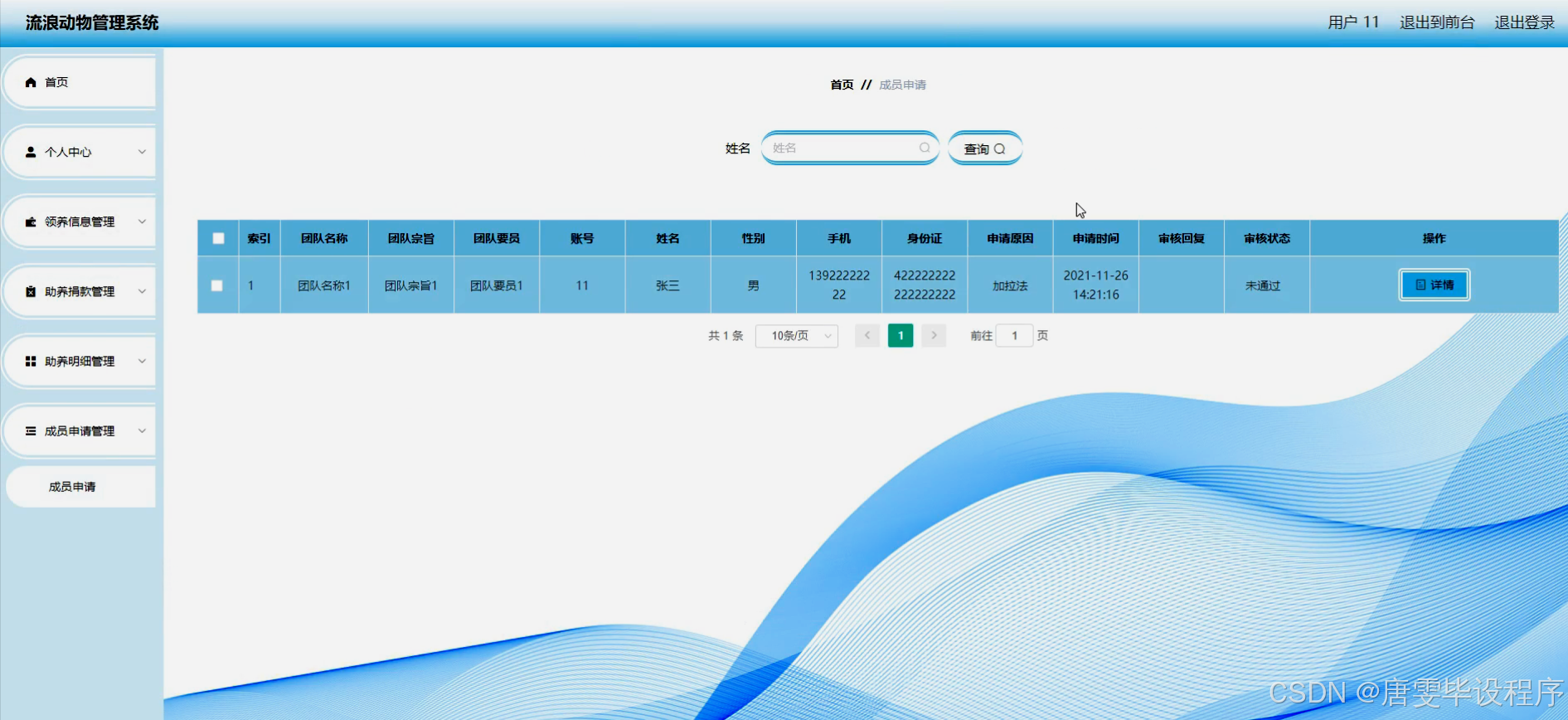 本研究的目的是设计并实现一个功能完善的流浪动物管理系统,旨在通过信息化手段,实现对流浪动物的全面管理和救助。系统应具备用户管理、宠物分类、宠物信息管理、领养信息管理、宠物救助、宠物助养、助养捐款管理、助养明细查询、关于我们、成员申请等功能模块。通过这些功能模块,能够实现对流浪动物的登记、救助、领养、助养等全过程的跟踪和管理,提高救助效率,降低救助成本,同时增强社会的公益意识和参与度。