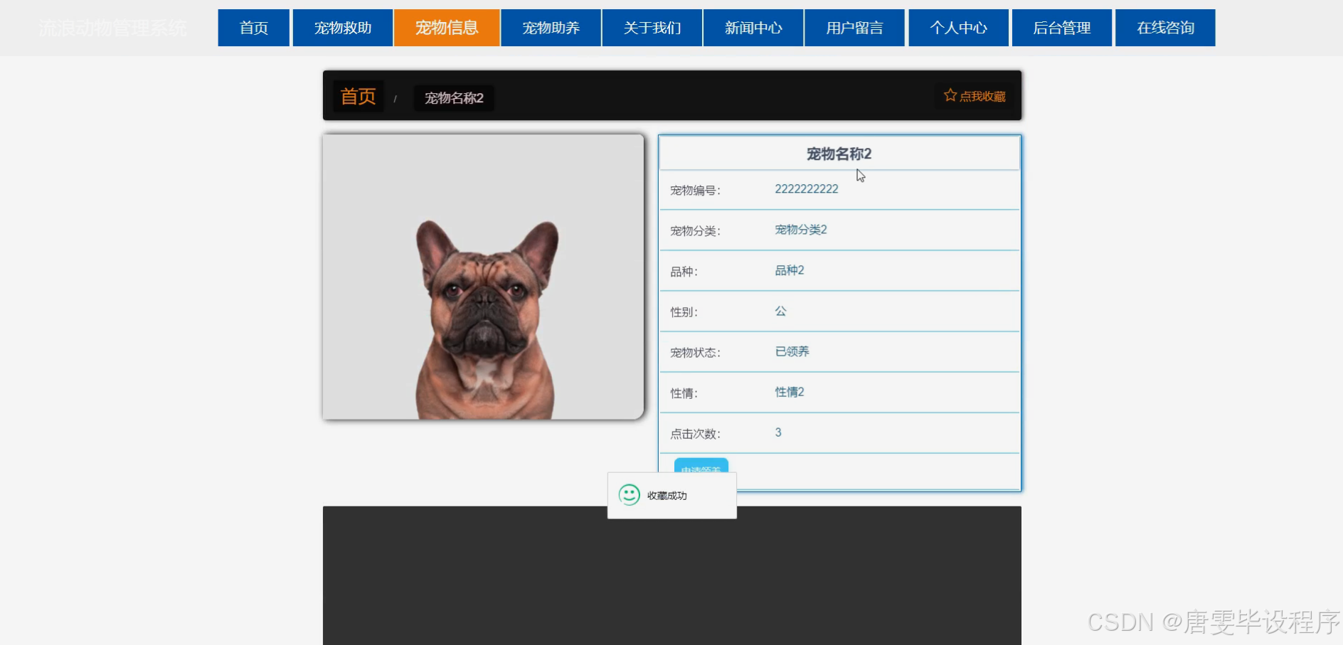 流浪动物管理系统的建设,对于推动社会公益事业的发展具有重要意义。首先,它能够提供一个平台,让更多的人参与到流浪动物的救助中来,增强社会的公益意识和责任感。其次,通过系统的管理和救助,能够改善流浪动物的生存状况,减少它们对城市环境的负面影响,提升城市居民的生活质量和幸福感。此外,系统的建立还有助于推动相关法律法规的完善,为流浪动物的保护提供更加有力的法律保障。