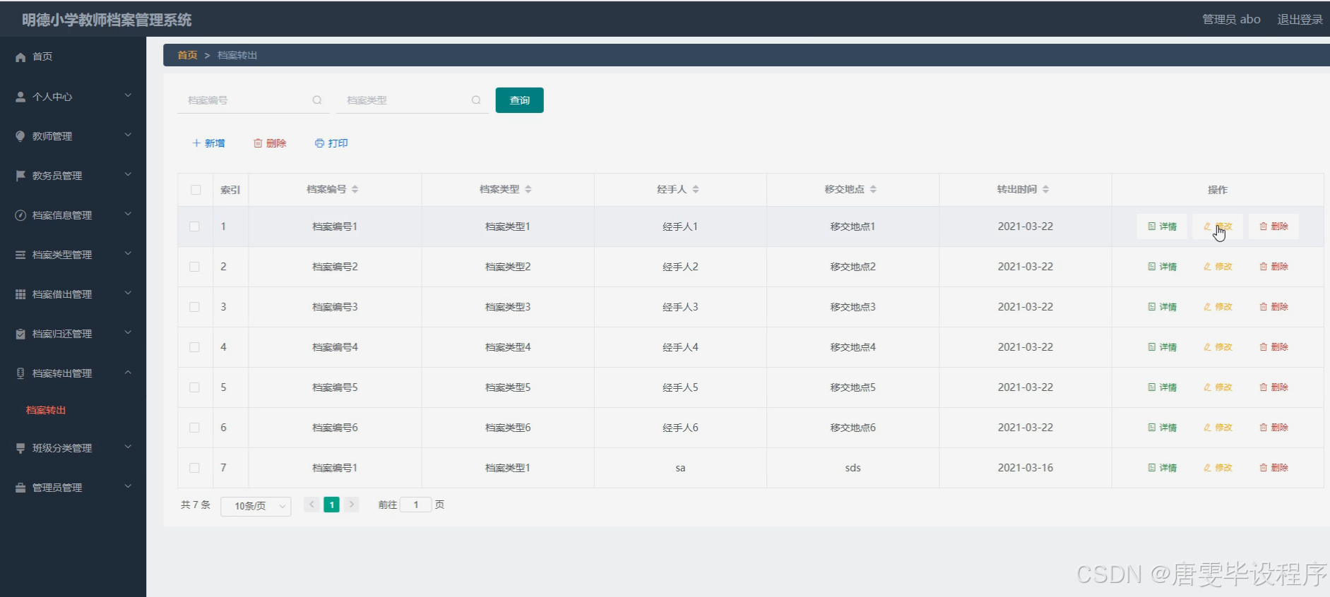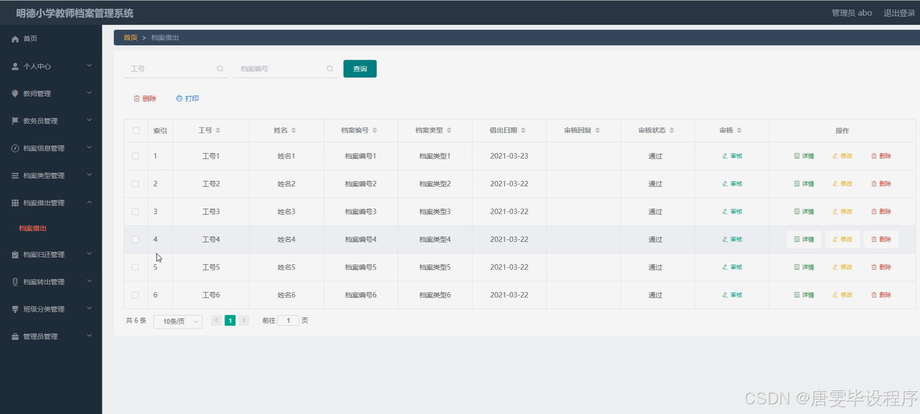 本研究旨在设计并实现一套功能完善的明德小学教师档案管理系统,以满足学校对教师档案管理的多元化需求。通过该系统,应能够实现对教师档案信息的全面管理,包括档案信息的录入、查询、借阅、归还、转出等操作,同时支持教务员与教师之间的信息交互与资源共享。此外,系统还需具备班级分类功能,以便更好地服务于学校的教学管理工作。通过该系统的实施,旨在提升明德小学档案管理的整体效能,促进学校的信息化与现代化发展。