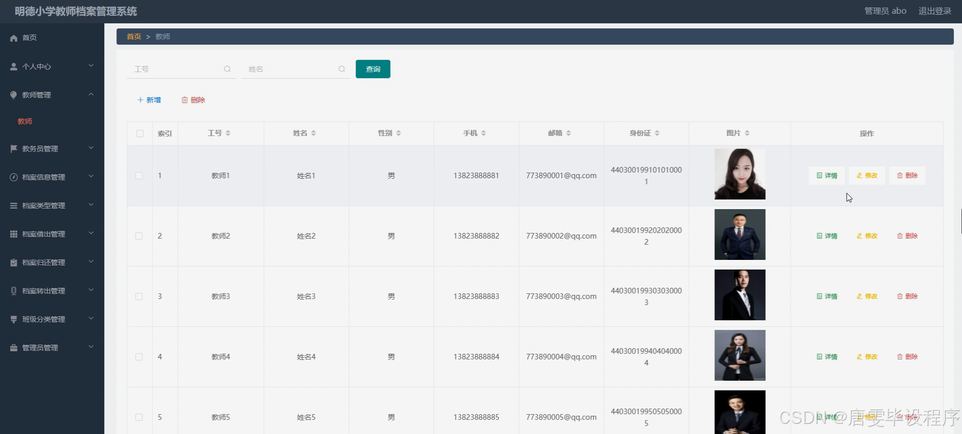 随着信息技术的迅猛发展,教育领域的信息化管理水平日益提升。在明德小学,教师档案管理作为学校日常工作的重要组成部分,直接关系到教学质量与管理效率。传统的纸质档案管理方式不仅占用大量空间,而且查询、借阅及更新过程繁琐,容易出现信息遗漏或丢失的情况。为了适应信息化时代的要求,提高档案管理效率与准确性,构建一套符合明德小学实际需求的教师档案管理系统显得尤为重要。该系统旨在通过数字化手段,实现教师档案信息的电子化存储、快速检索与高效管理,从而推动学校管理工作的现代化进程。