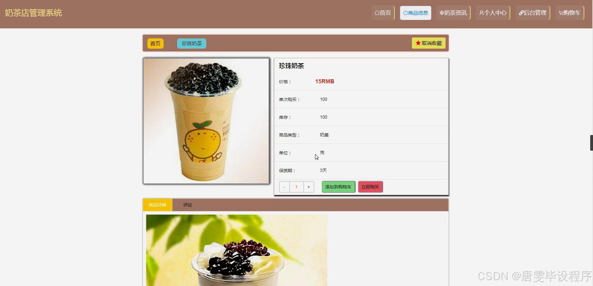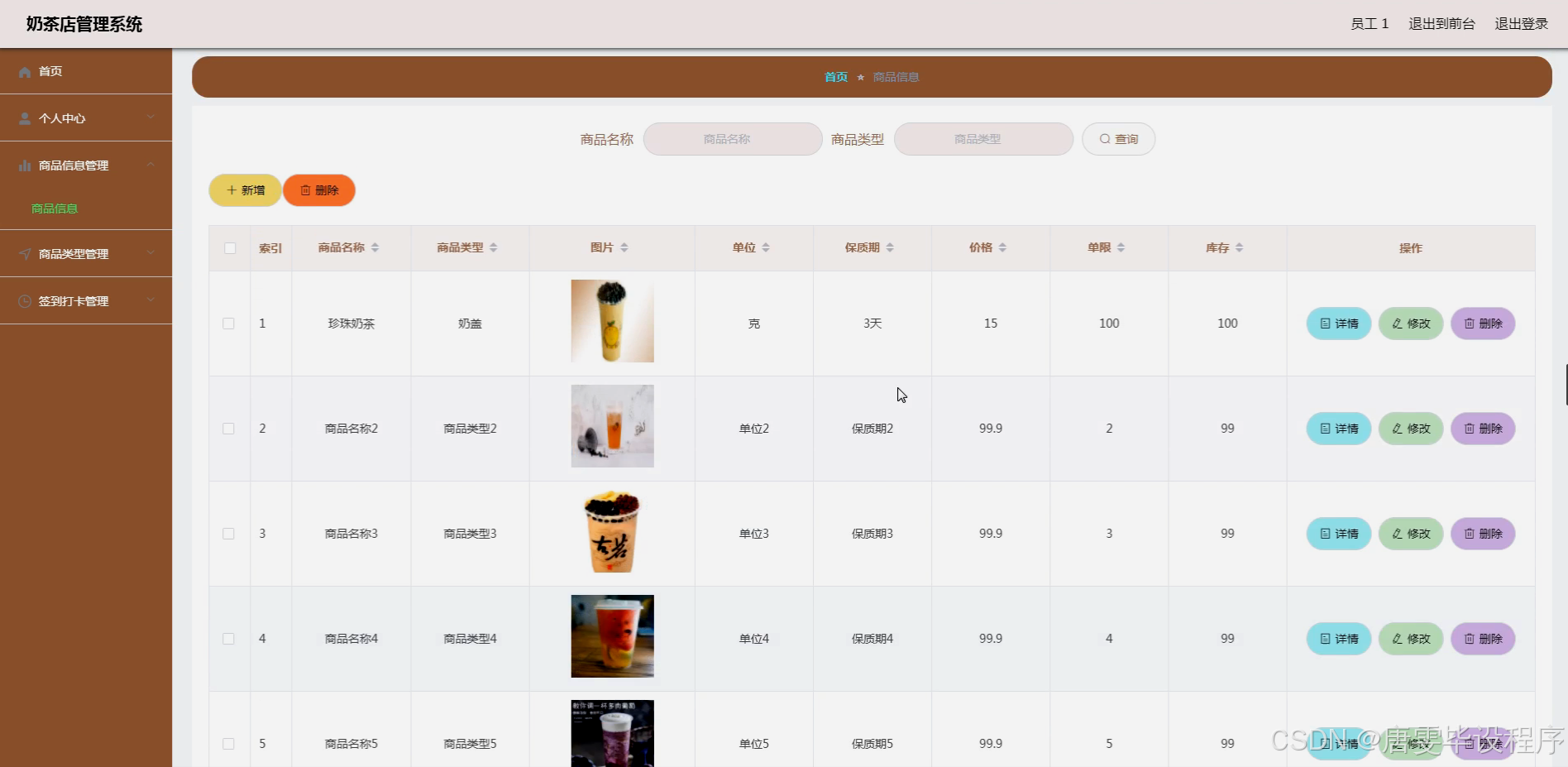 奶茶店管理系统的开发和应用,对于提升奶茶店的运营效率、优化顾客体验具有重要意义。通过系统化管理,奶茶店可以实现对员工信息的全面掌控,合理安排工作时间和任务分配;同时,系统还可以帮助奶茶店精准掌握商品信息,及时更新商品类型和库存情况,确保顾客能够享受到最新、最优质的饮品。此外,系统还可以记录用户的消费习惯和偏好,为奶茶店提供个性化的营销策略支持,进一步提升顾客满意度和忠诚度。