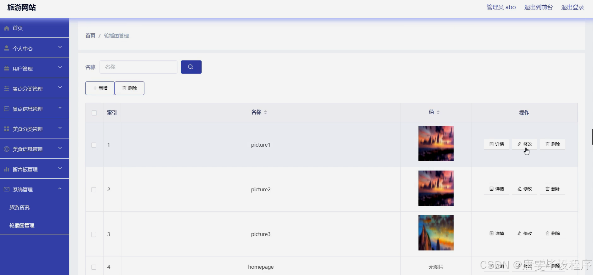 本研究的主要目的是设计并实现一个具有用户管理、景点分类与详细信息展示、美食分类与推荐等功能的旅游网站。通过该网站,用户能够轻松浏览各类旅游信息,根据个人喜好和需求定制旅游计划;景点和美食商家则能够通过网站发布信息,吸引更多游客。最终,实现旅游资源的优化配置和旅游市场的健康发展。