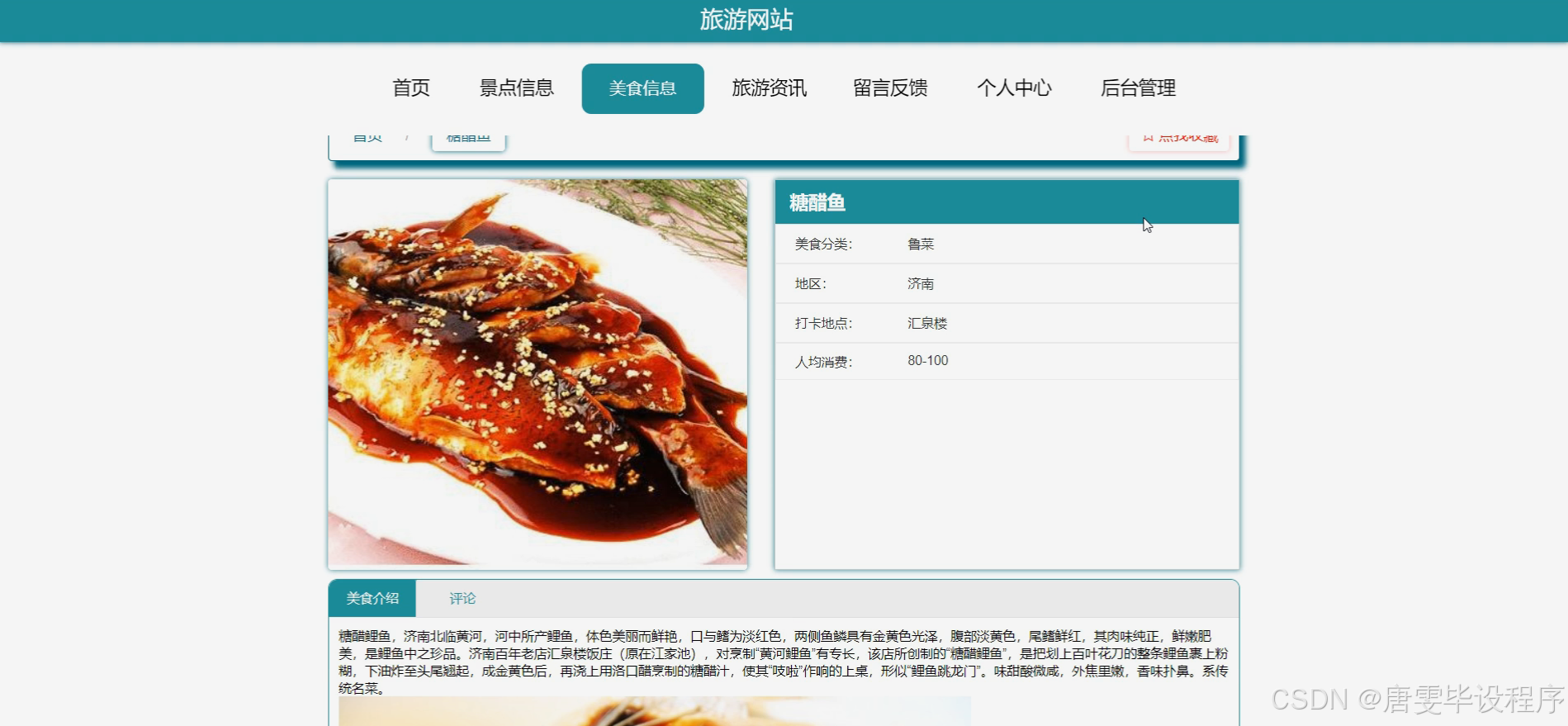 本研究将围绕旅游网站的系统功能展开,具体包括用户管理模块、景点分类与信息展示模块、美食分类与信息推荐模块等。在用户管理模块中,将实现用户的注册、登录、个人信息管理等功能,确保用户信息的安全与隐私。景点分类与信息展示模块将整合各类旅游资源,按照不同的分类标准(如地理位置、景点类型等)进行展示,提供详细的景点介绍、图片、视频等多媒体信息,帮助用户全面了解景点信息。美食分类与信息推荐模块则将结合用户偏好和地理位置,推荐附近的美食,提供美食的详细介绍、图片、评价等信息,丰富用户的旅游体验。同时,还将考虑网站的界面设计、交互体验、系统性能等方面的优化,确保网站的高效运行和良好用户体验。
