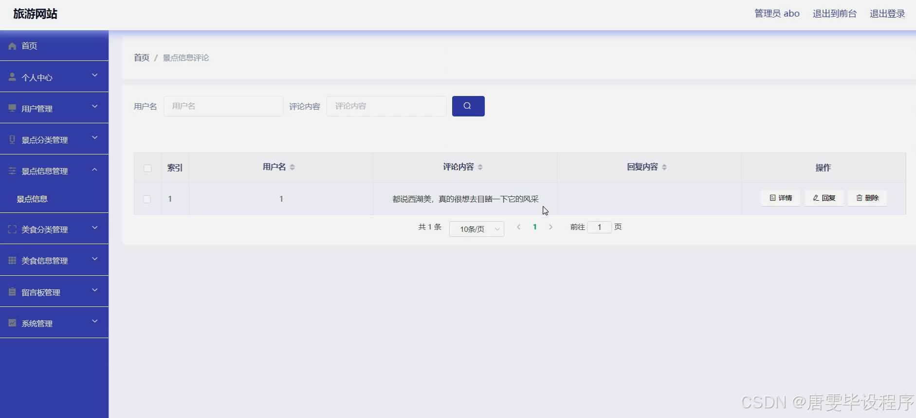 随着信息技术的迅猛发展和人们生活水平的提高,旅游业已成为全球经济的重要组成部分,其繁荣程度直接反映了国家经济的活力与民众生活质量的提升。互联网技术的普及,特别是移动互联网的广泛应用,为旅游行业带来了前所未有的变革。传统的旅游服务模式逐渐向线上转移,旅游网站作为连接旅游者与旅游资源的桥梁,其重要性日益凸显。然而,市场上的旅游网站琳琅满目,功能各异,但普遍存在信息冗杂、用户体验不佳等问题。因此,开发一个集用户管理、景点分类与详细介绍、美食推荐等功能于一体的综合性旅游网站,不仅符合当前旅游市场的发展趋势,也是提升旅游服务质量、满足旅游者个性化需求的重要举措。