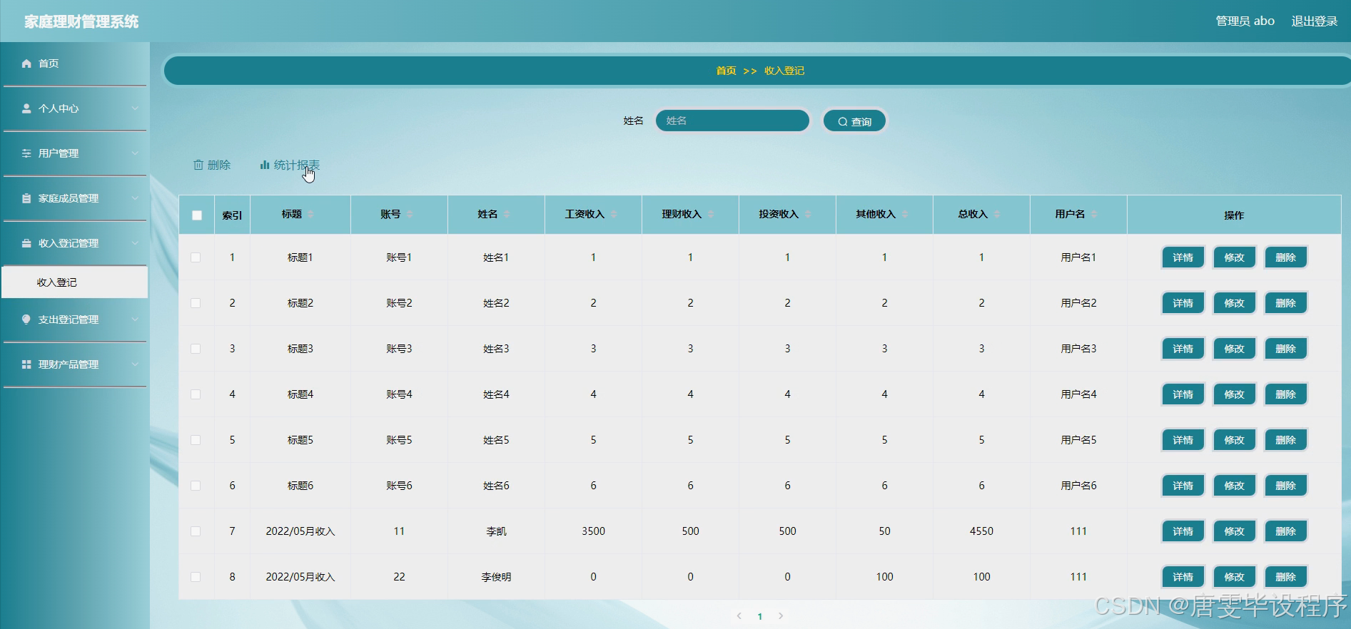 家庭理财管理系统的开发和应用具有重要的现实意义。它不仅能够提升家庭财务管理的便捷性和规范性,还能够通过数据分析和可视化展示,帮助家庭更直观地了解自身的财务状况,为家庭理财决策提供科学依据。此外,系统的智能化功能,如收入支出预警、理财产品推荐等,能够进一步增强家庭的风险防范能力和财富增值能力,促进家庭财务的健康发展。