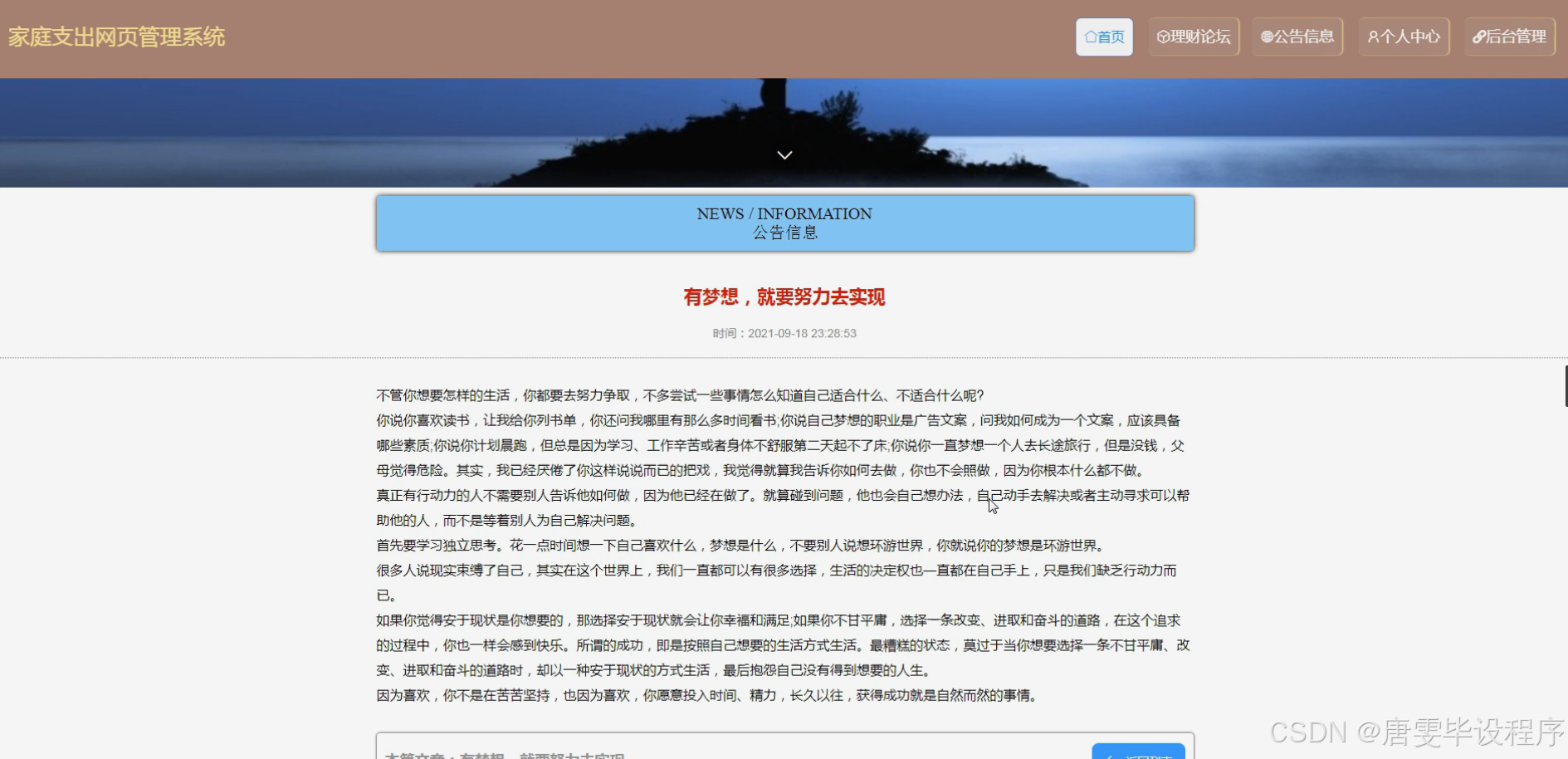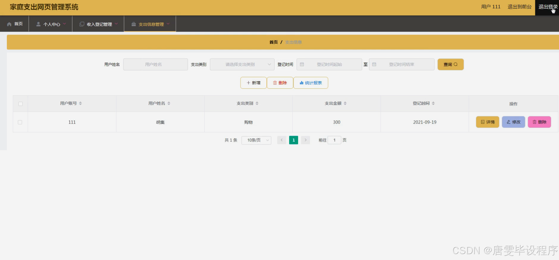 在当今社会,随着家庭经济活动的日益复杂和多样化,有效管理家庭财务成为每个家庭不可或缺的一部分。传统的手工记账方式不仅耗时费力,还容易出错,难以满足现代家庭对财务管理精确性、便捷性和实时性的需求。随着互联网技术的飞速发展,网页应用以其跨平台、易访问的特点,逐渐成为家庭管理各类事务的首选工具。因此,开发一套家庭支出网页管理系统,旨在利用现代信息技术手段,帮助家庭实现支出的智能化管理,提升家庭财务的透明度和可控性,具有重要的现实意义和应用价值。