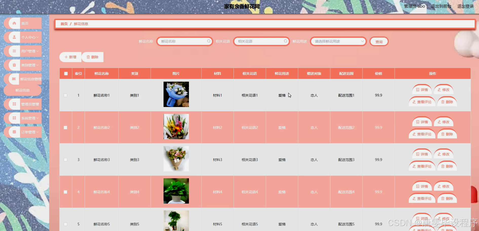 “家有余香鲜花网”的研究内容主要围绕系统功能的构建与优化展开,具体包括用户管理、类别划分与鲜花信息管理三大核心模块。在用户管理方面,平台将设计完善的用户注册、登录、个人信息管理等功能,确保用户信息的安全与隐私。同时,通过用户行为分析,为用户提供个性化的推荐服务,提升购物体验。在类别划分上,平台将根据鲜花的种类、用途、季节等因素,对鲜花进行科学分类,便于用户快速找到心仪的产品。此外,平台还将提供详细的鲜花信息,包括鲜花的图片、价格、花语、养护方法等,帮助用户全面了解产品,做出更加明智的购买决策。通过这些功能的实现与优化,“家有余香鲜花网”将为用户提供一个既便捷又充满乐趣的鲜花购物体验。