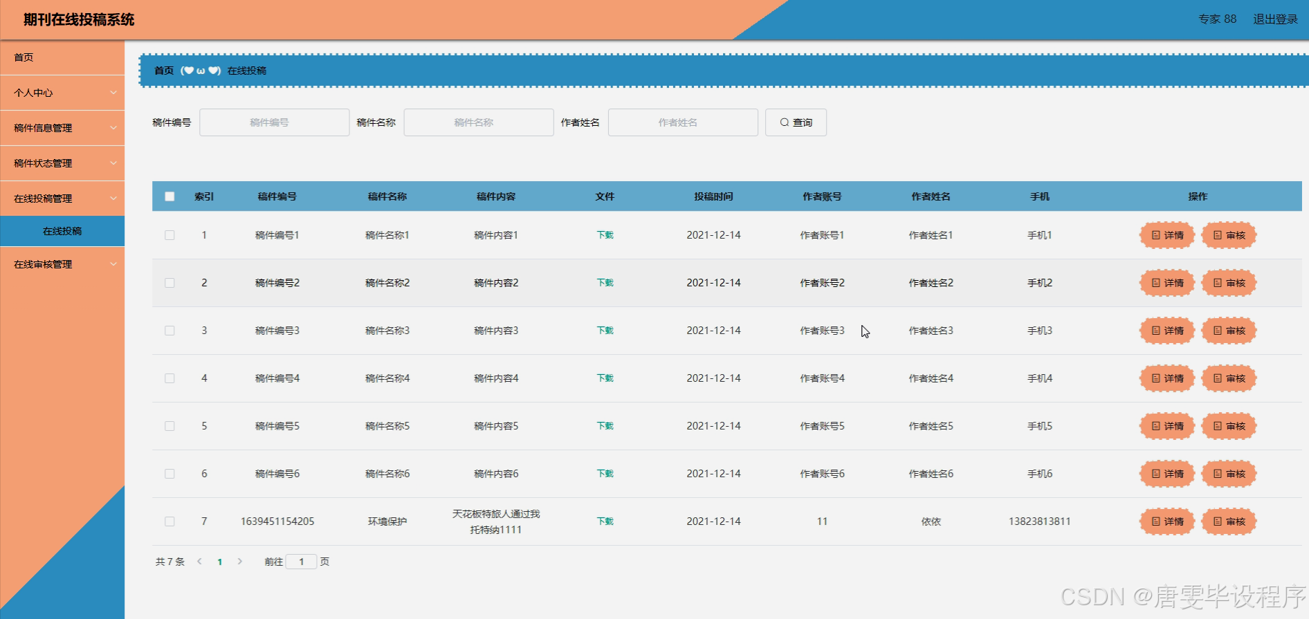 拟解决的主要问题包括:如何确保投稿系统的安全性与稳定性,保护作者和审稿专家的隐私;如何设计高效的稿件管理流程,减少人工干预,提高审稿效率;如何构建智能化的稿件分配机制,确保审稿的公正性和准确性;以及如何优化用户界面,提升用户体验,降低学习成本等。