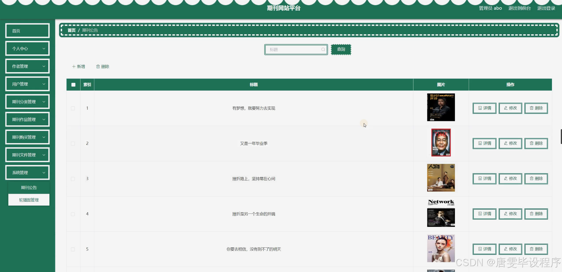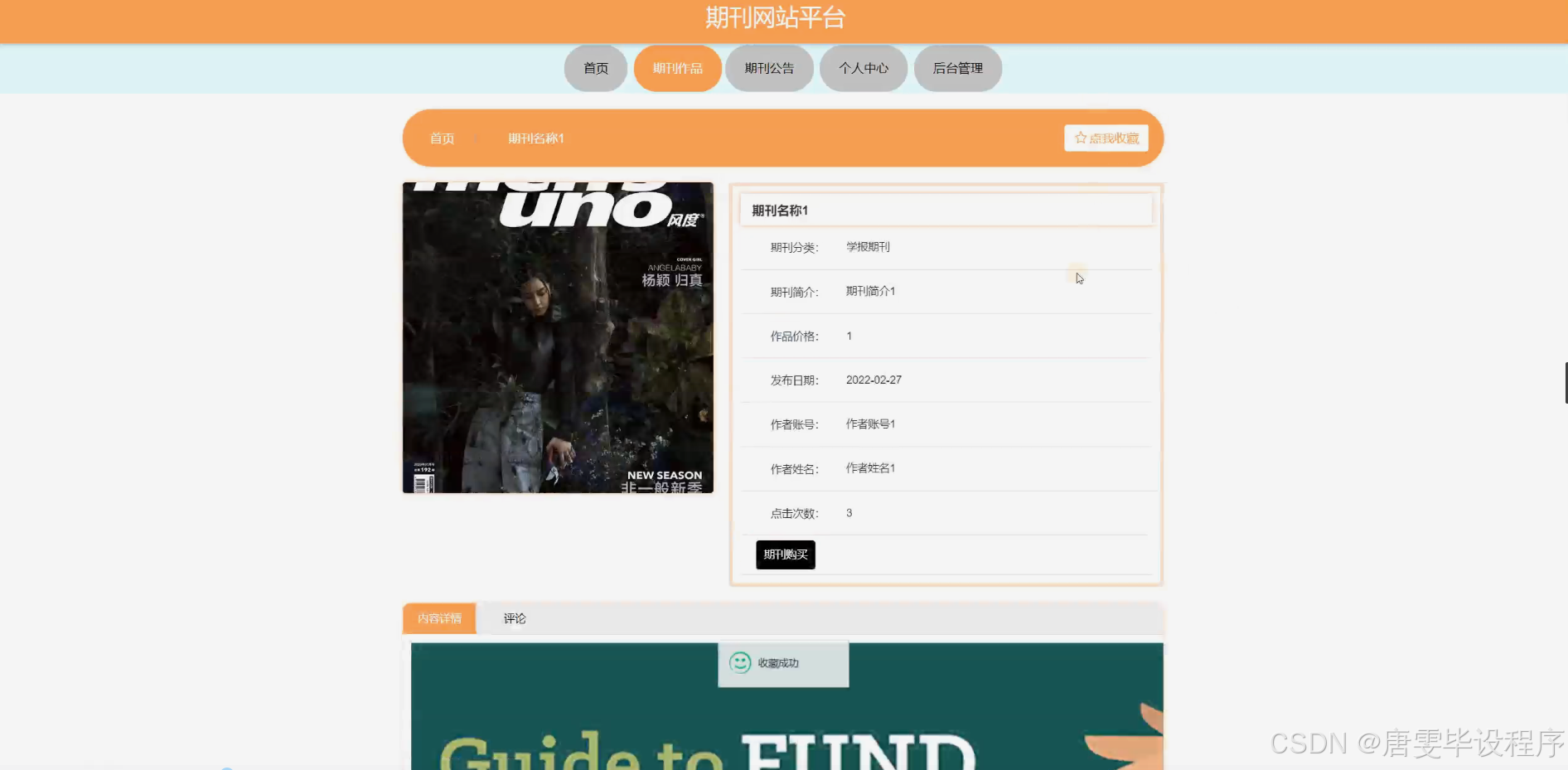 随着互联网技术的迅猛发展和信息化时代的到来,期刊作为学术交流与知识传播的重要载体,其传播方式已逐渐从传统纸质媒介向数字化、网络化平台转型。当前,众多学术期刊虽然已开始构建线上平台,但普遍存在功能单一、用户体验不佳、交互性差等问题,难以满足作者投稿、用户查阅、作品管理、分类检索及购买下载等多元化需求。在此背景下,开发一个功能全面、操作便捷、用户体验优良的期刊网站平台显得尤为重要。该平台旨在通过整合期刊资源,优化信息检索机制,提升期刊传播效率,进一步推动学术研究与知识共享。