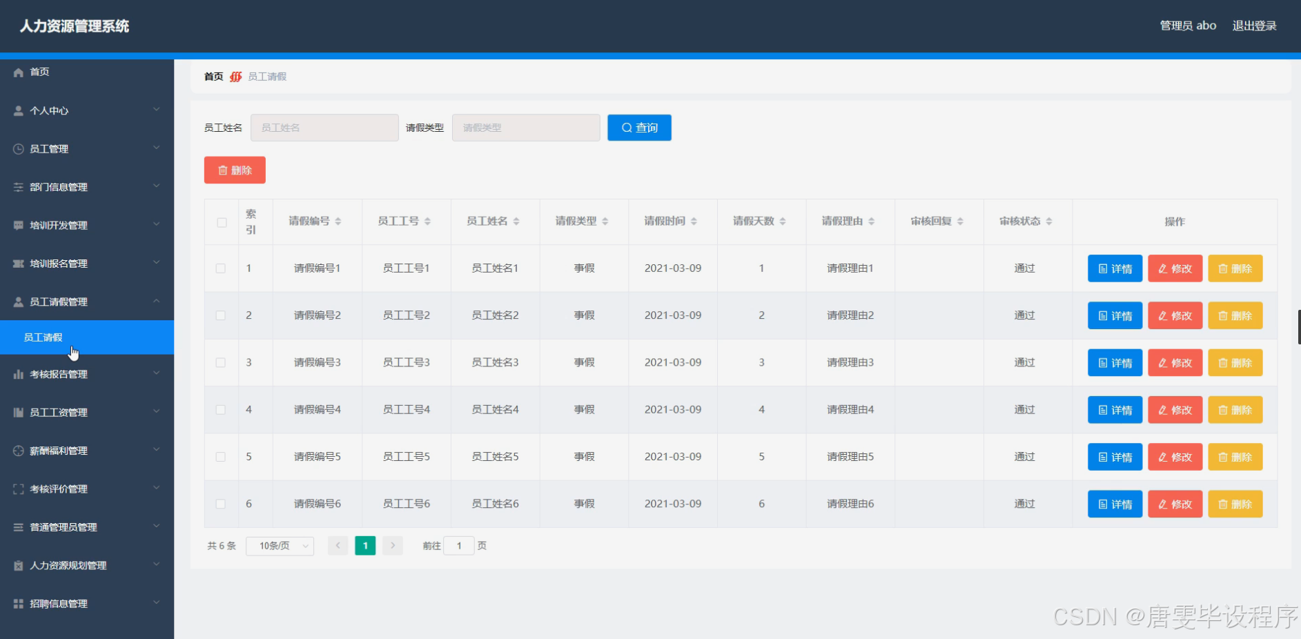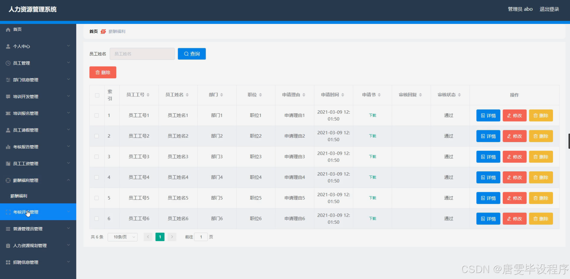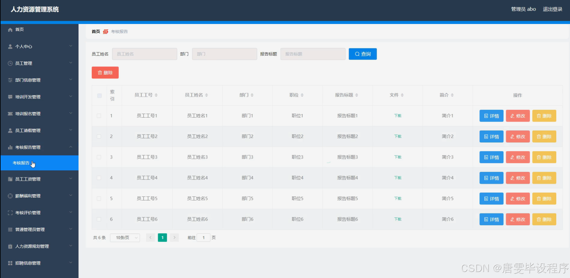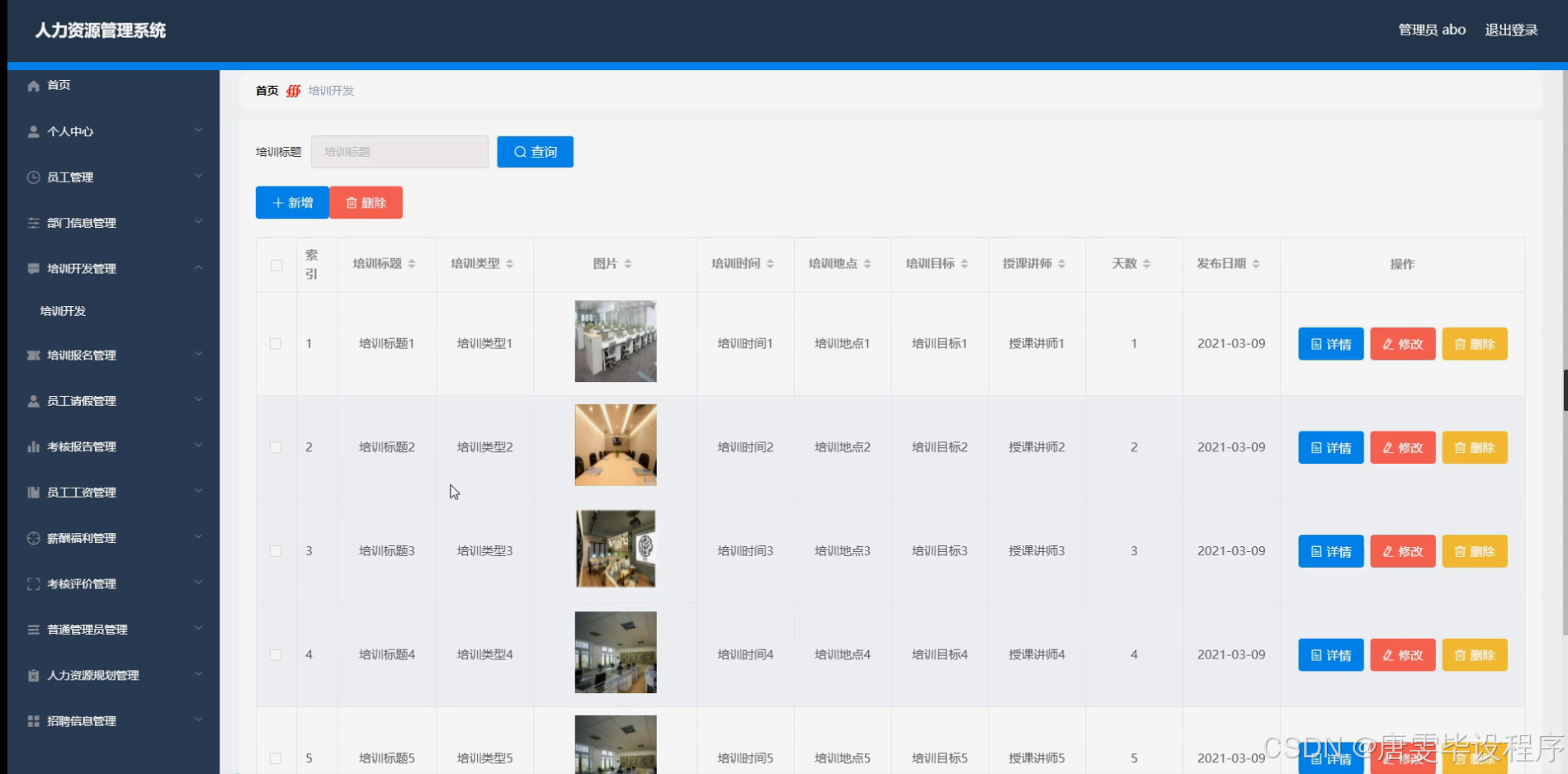本研究内容涵盖人力资源管理系统的主要功能模块,包括员工信息管理、部门信息管理、培训开发与报名管理、员工请假管理、考核报告与评价管理、员工工资与薪酬福利管理、普通管理员权限管理、人力资源规划、招聘信息管理等。员工信息管理模块负责员工基本信息的录入、查询和修改;部门信息管理模块实现部门结构的设置和调整;培训开发与报名管理模块支持培训计划的制定、发布和员工的在线报名;员工请假管理模块提供便捷的请假申请和审批流程;考核报告与评价管理模块实现员工绩效的考核和评价;员工工资与薪酬福利管理模块负责工资计算和福利发放;普通管理员权限管理模块确保系统的安全运行;人力资源规划模块帮助企业进行人才需求的预测和规划;招聘信息管理模块支持招聘信息的发布和简历的筛选。通过这些功能模块的实现,系统能够为企业提供全面、高效的人力资源管理服务。