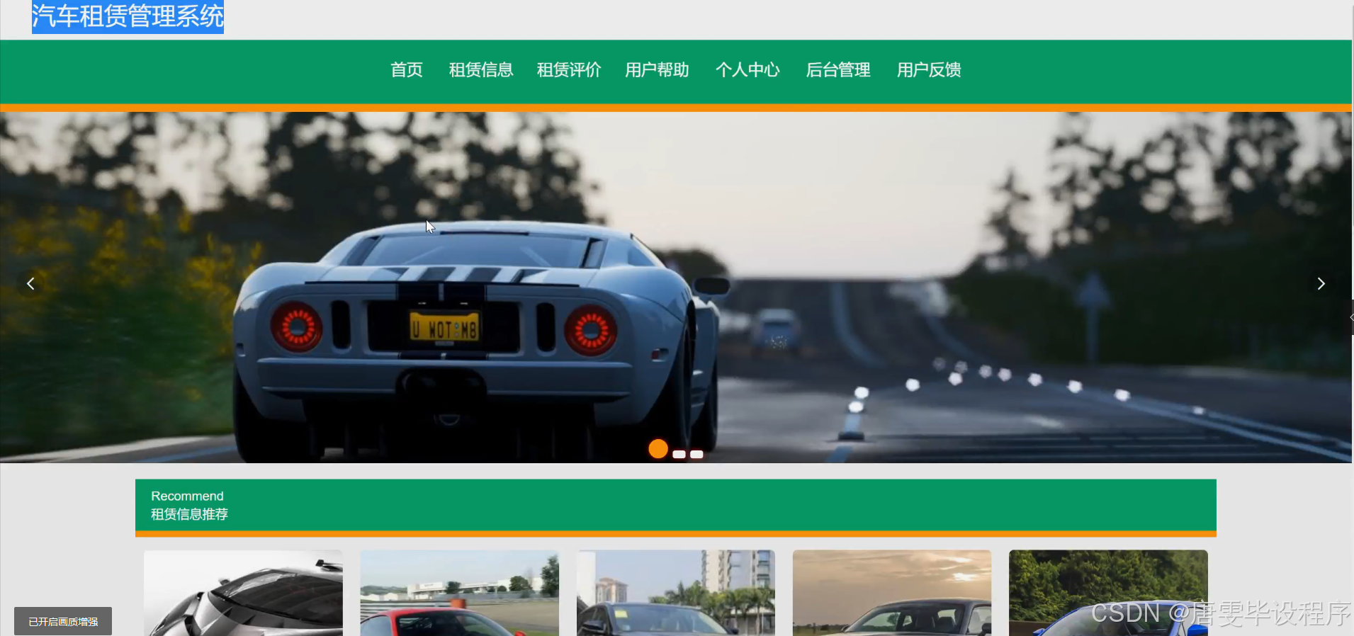 本研究旨在开发一套功能完善的汽车租赁管理系统,以满足汽车租赁商家和客户的多样化需求。通过实现租赁商家信息管理、汽车分类管理、用户信息管理、会员类型及办理流程管理、租赁信息管理、租赁订单管理以及租赁评价等功能,构建一个高效、便捷、安全的汽车租赁管理平台。该系统旨在提升汽车租赁行业的信息化水平,优化租赁流程,提高客户满意度和商家运营效率,为汽车租赁行业的可持续发展提供有力支持。