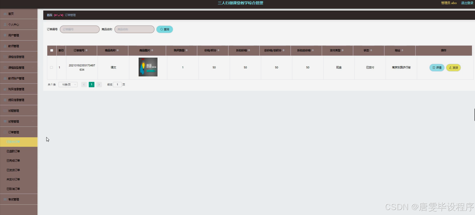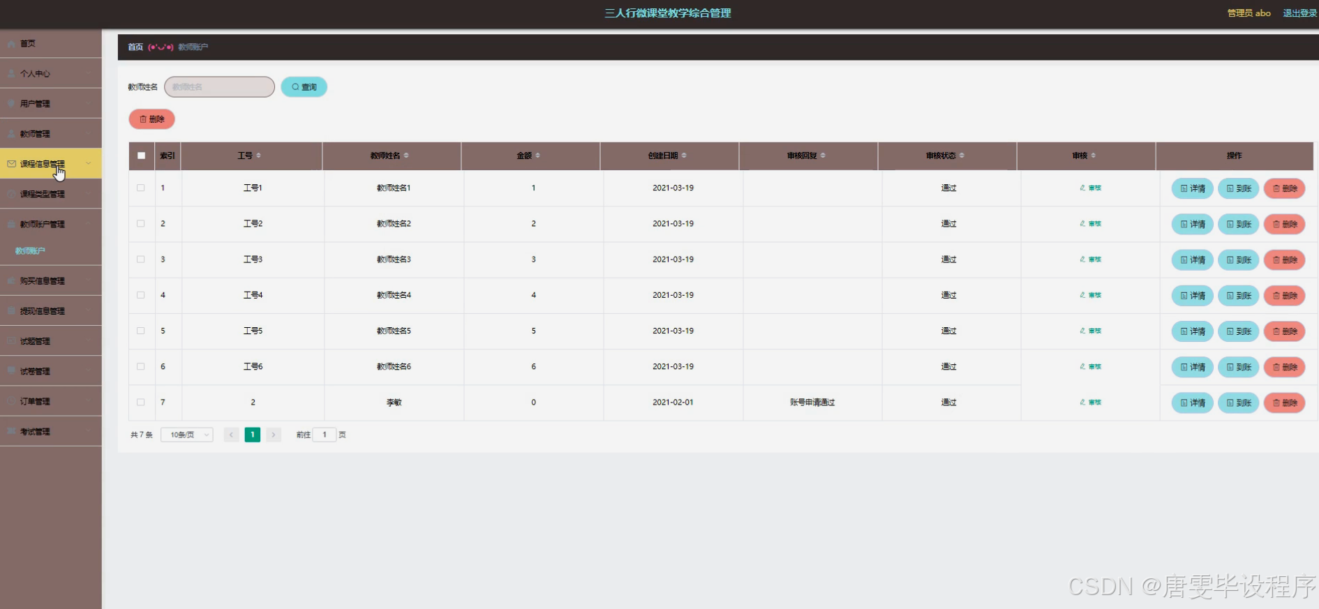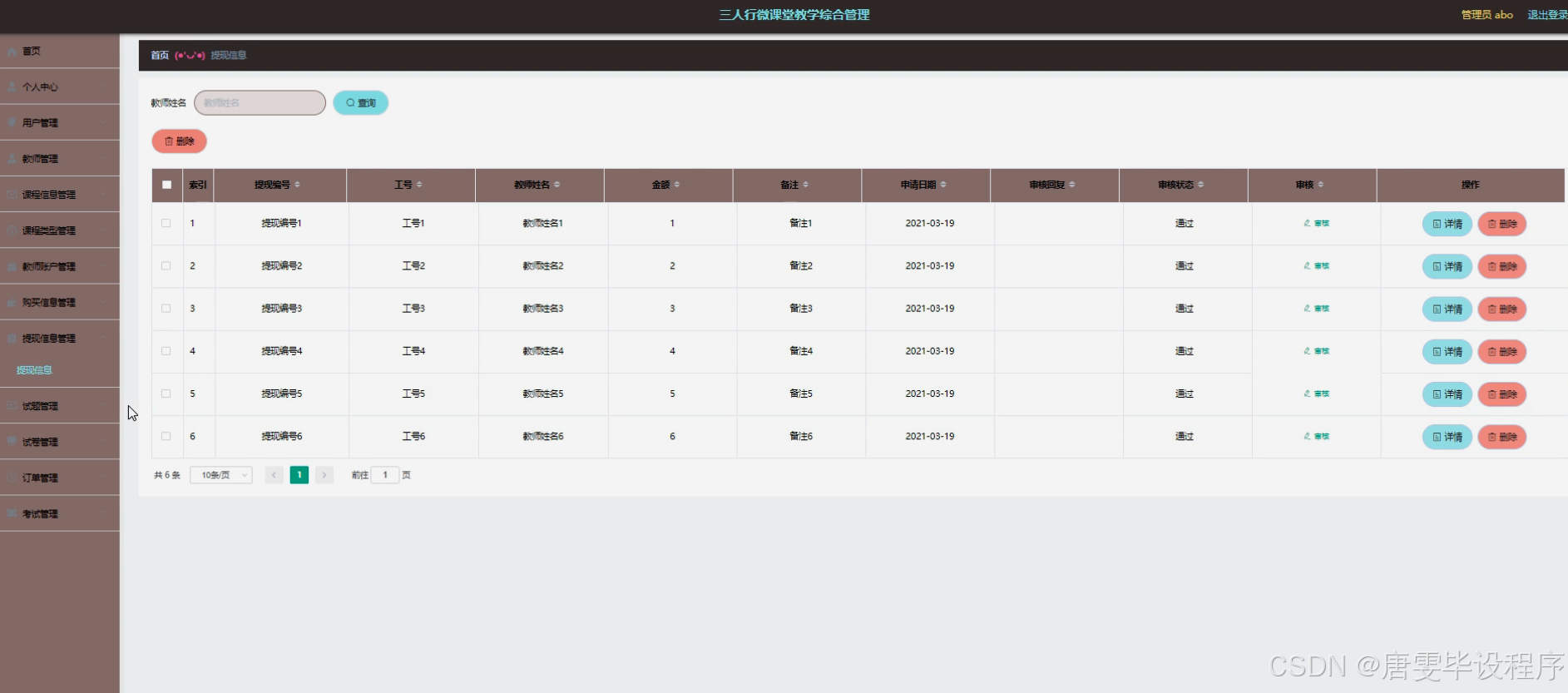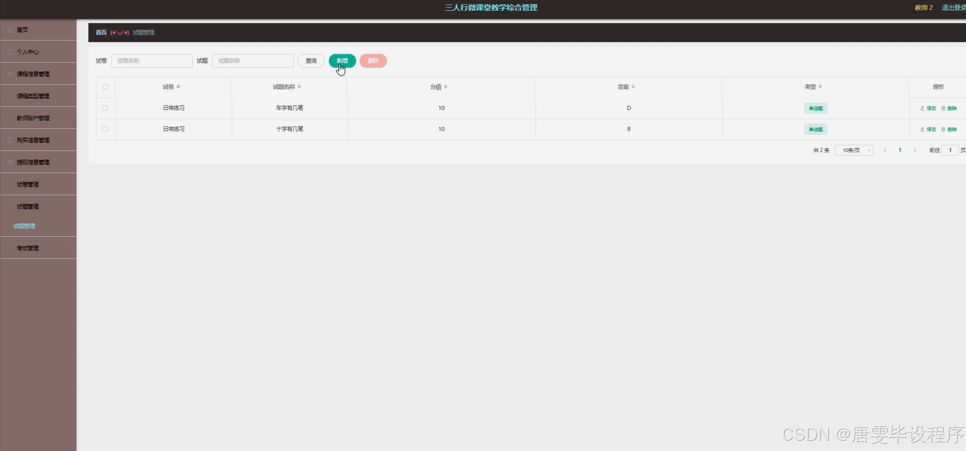 本研究的主要目的是设计并实现一套功能完善、操作简便的“三人行微课堂教学综合管理”系统,以满足教师、学生及管理者等不同用户角色的需求。通过该系统,期望实现用户信息的精准管理、课程资源的优化配置、教师账户的安全维护以及交易信息的透明化管理,从而全面提升微课堂教学的效率与质量,促进教育资源的广泛共享与深度应用。同时,本研究也希望通过实践探索,为在线教育平台的未来发展提供有益的参考与启示。