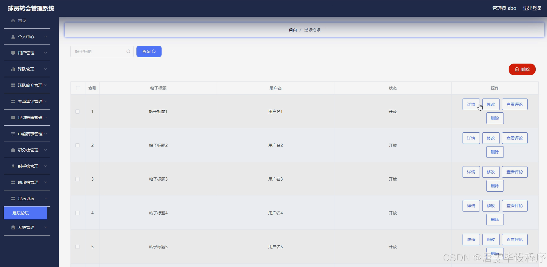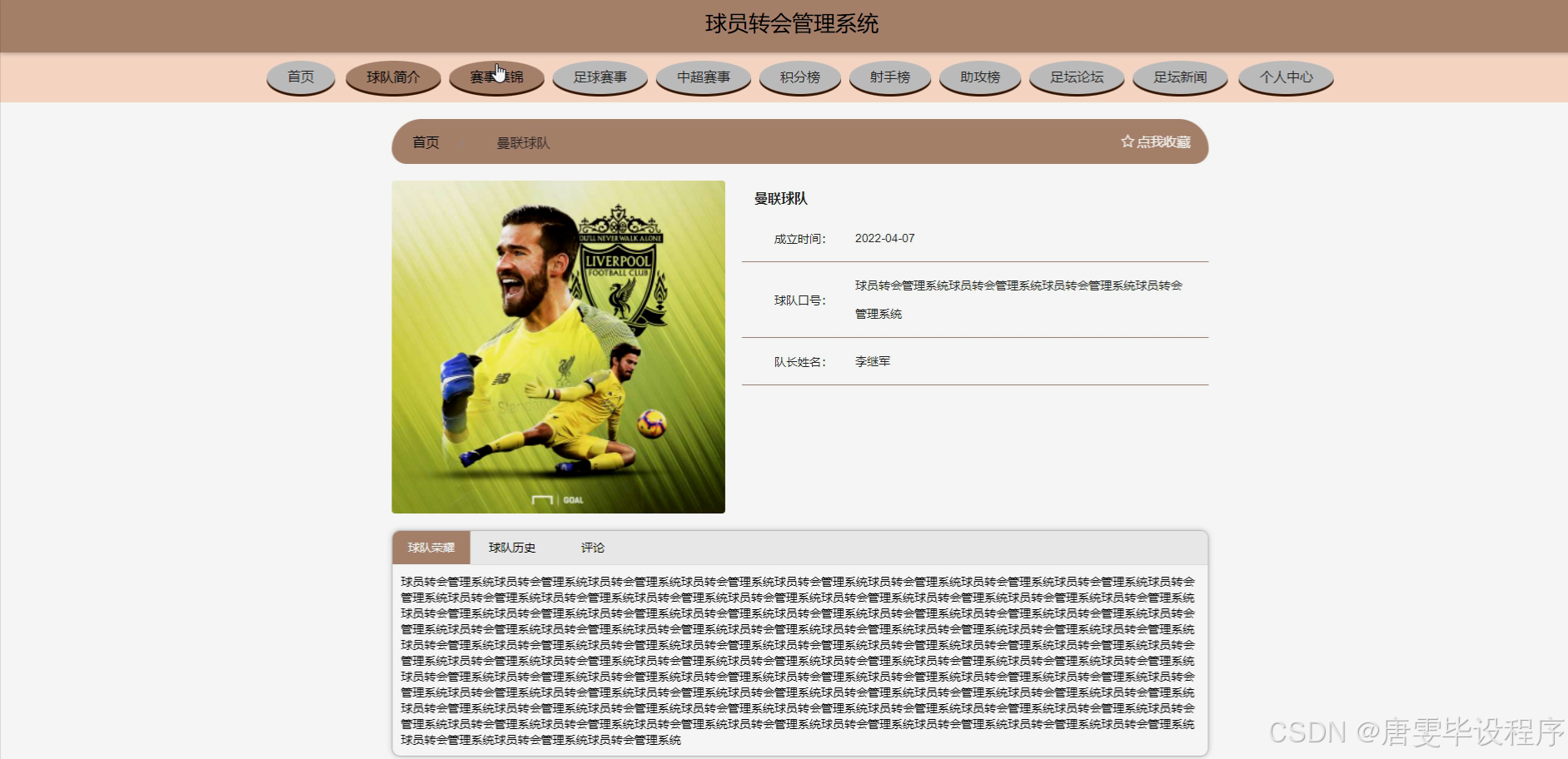 随着全球足球产业的蓬勃发展,球员转会市场日益活跃,各大俱乐部间的球员流动成为推动足球竞技水平提升的关键因素之一。然而,传统的转会管理方式往往依赖于人工操作,不仅效率低下,还容易出错,难以适应现代足球快速变化的节奏。特别是在信息化、数字化高速发展的今天,一个高效、智能的球员转会管理系统显得尤为重要。该系统能够整合球员信息、球队需求、赛事动态等多维度数据,为俱乐部管理层提供决策支持,促进转会过程的透明化、规范化,进而推动整个足球产业的健康发展。