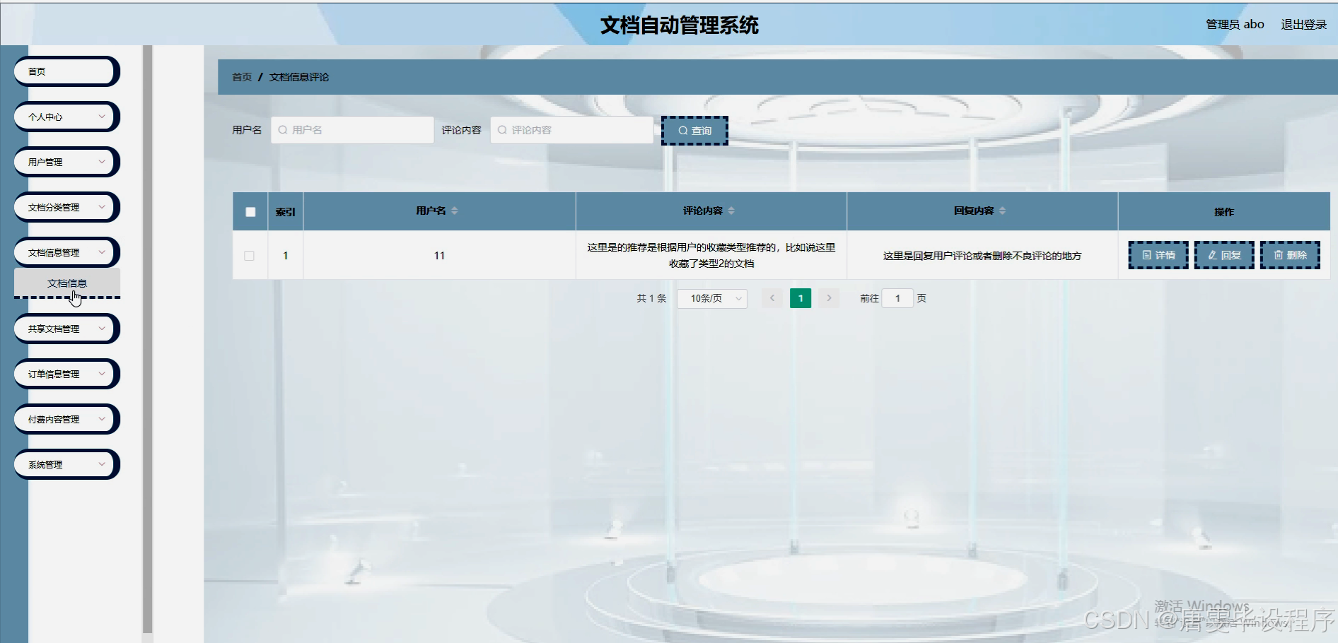 本研究旨在设计并实现一套功能完善的文档自动管理系统,以自动化、智能化为核心,提升文档管理的效率和安全性。通过该系统,用户能够轻松实现文档的上传、分类、检索、共享及付费下载等功能,同时系统能够自动记录文档的修改历史,维护版本一致性。此外,系统还需具备强大的权限管理机制,确保不同用户根据其角色和权限访问相应的文档资源。最终,该系统将成为企业和机构高效、安全、智能的文档管理解决方案。