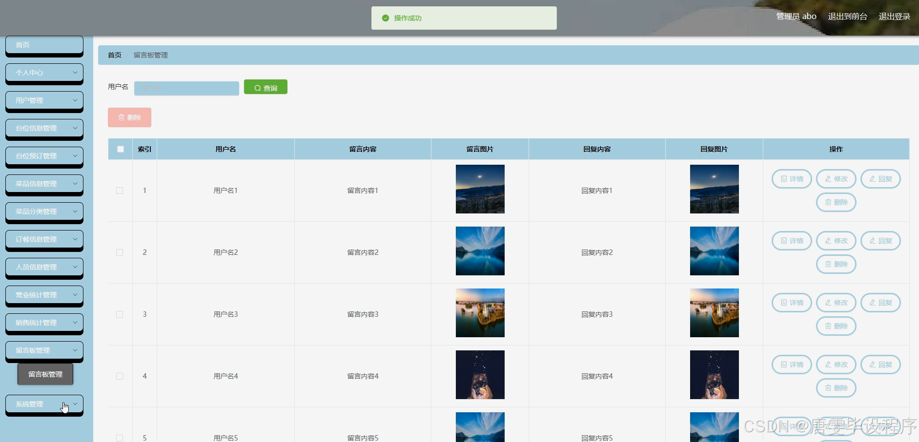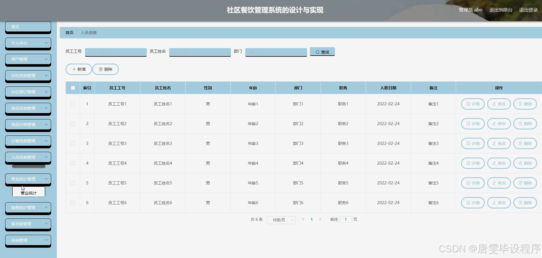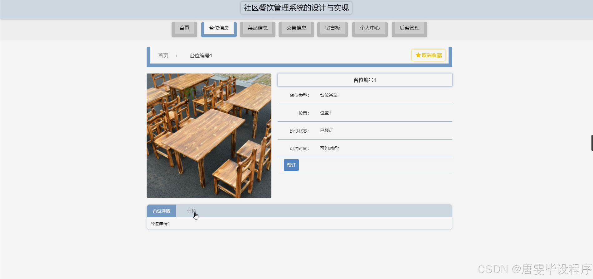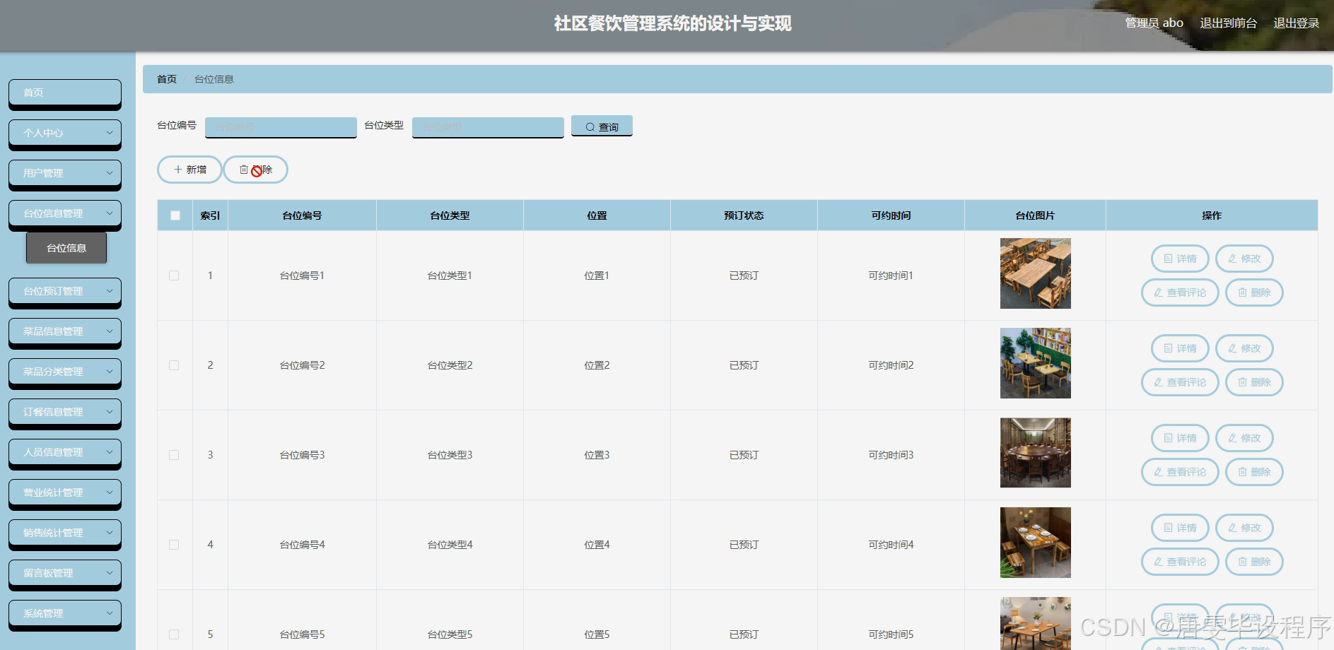 本研究旨在设计并实现一个功能完善的社区餐饮管理系统,以满足餐饮企业和社区居民的双重需求。通过整合用户管理、台位预订、菜品信息展示、菜品分类、订餐信息及销售统计等功能模块,实现餐饮业务的全面数字化管理。该系统旨在提高餐饮企业的运营效率和服务质量,同时优化顾客的用餐体验,推动社区餐饮行业向智能化、信息化方向发展。