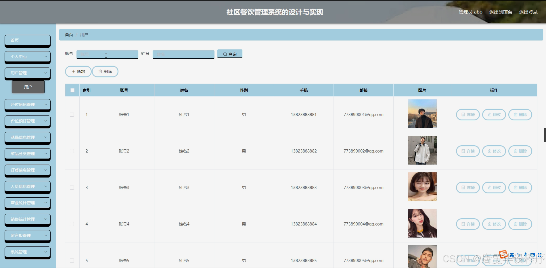 社区餐饮管理系统的研究与应用,不仅能够解决餐饮企业面临的管理难题,还能为社区居民提供更加便捷、高效的餐饮服务。通过该系统,餐饮企业可以实时掌握台位使用情况,合理安排顾客预订,避免资源浪费;同时,系统提供的菜品分类和详细信息展示功能,有助于顾客快速了解菜品,提升点餐效率。此外,销售统计功能还能为餐饮企业提供精准的数据支持,帮助企业制定科学的经营策略,提高盈利能力。因此,该系统对于促进社区餐饮行业的健康发展具有重要意义。
