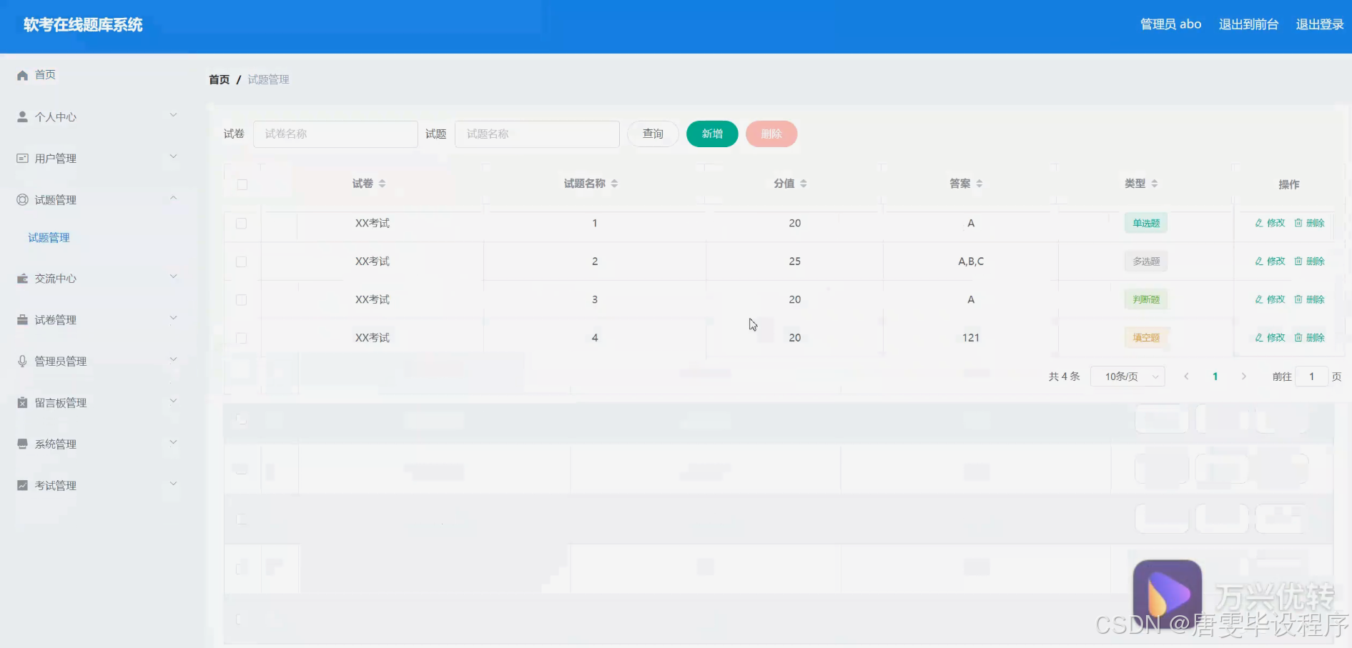 随着信息技术的飞速发展和国家对信息化人才培养的高度重视,计算机技术与软件专业技术资格(水平)考试(简称软考)已成为衡量IT行业人才技能水平的重要标尺。软考不仅涵盖了广泛的IT知识体系,还对考生的实践能力和理论素养提出了高要求。然而,传统的备考方式往往依赖于纸质教材和模拟题集,难以满足考生个性化、高效化的学习需求。在此背景下,开发一个集在线练习、模拟考试、成绩分析于一体的软考在线题库系统显得尤为重要。该系统旨在通过数字化手段,为考生提供一个便捷、高效、全面的备考平台,以应对日益增长的软考需求。