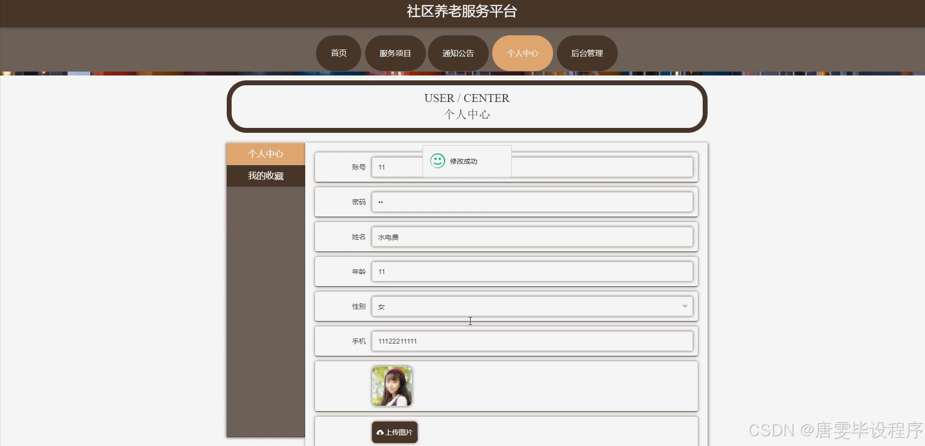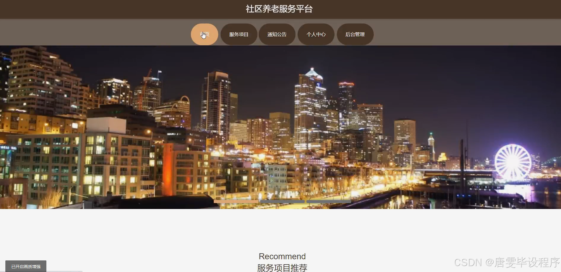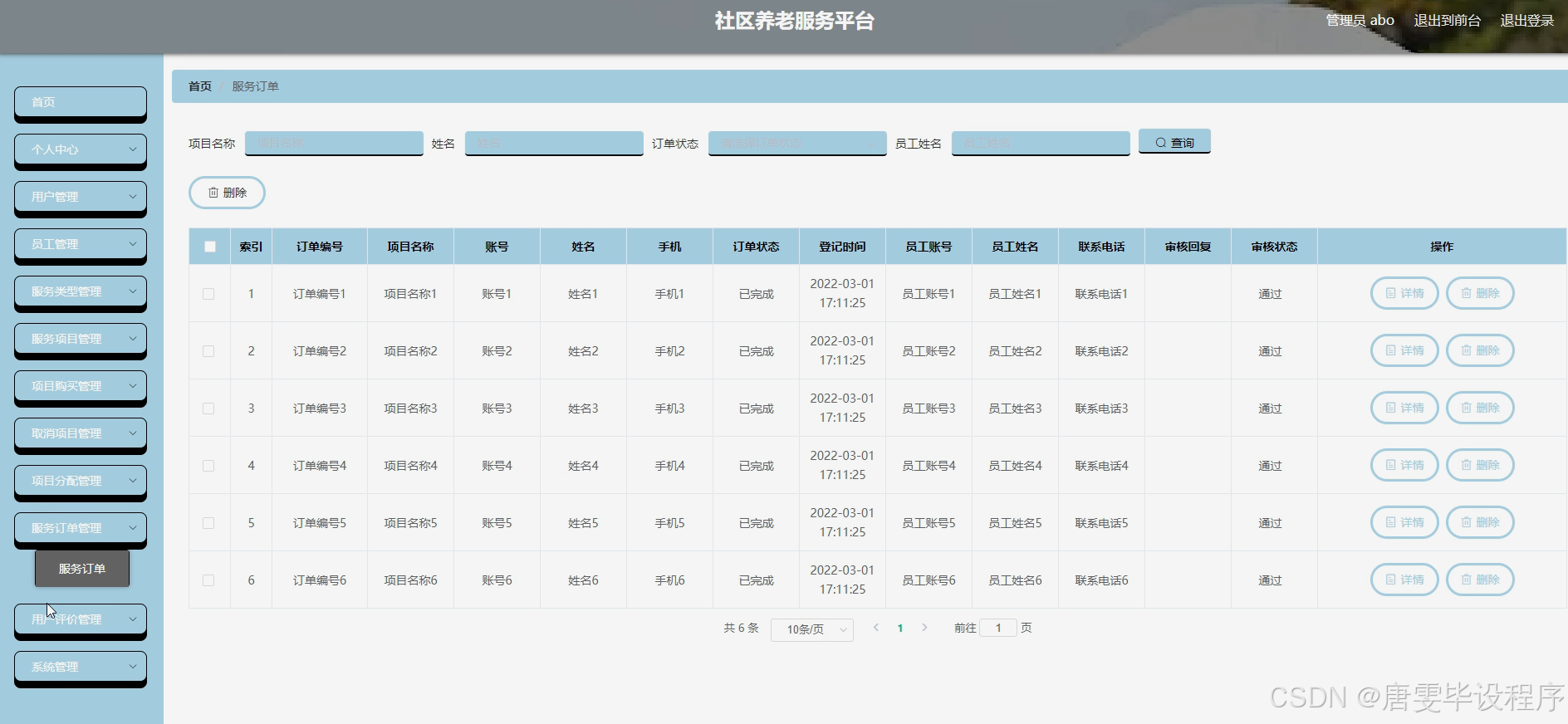 本研究旨在设计并实现一个功能完善的社区养老服务平台,以满足老年人多样化的养老服务需求。通过平台,实现用户信息管理、员工调度管理、服务类型与项目展示、项目购买与取消、项目分配、服务订单管理以及用户评价等功能,为老年人提供一站式、全方位的养老服务体验。同时,通过平台的运营和优化,推动社区养老服务的标准化、专业化发展,提升养老服务的整体质量和效率。