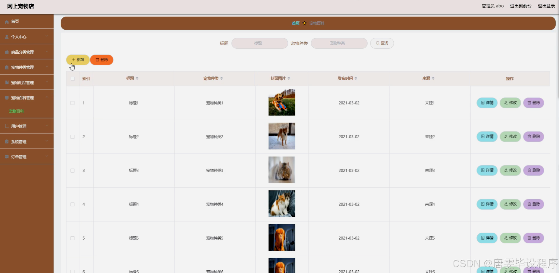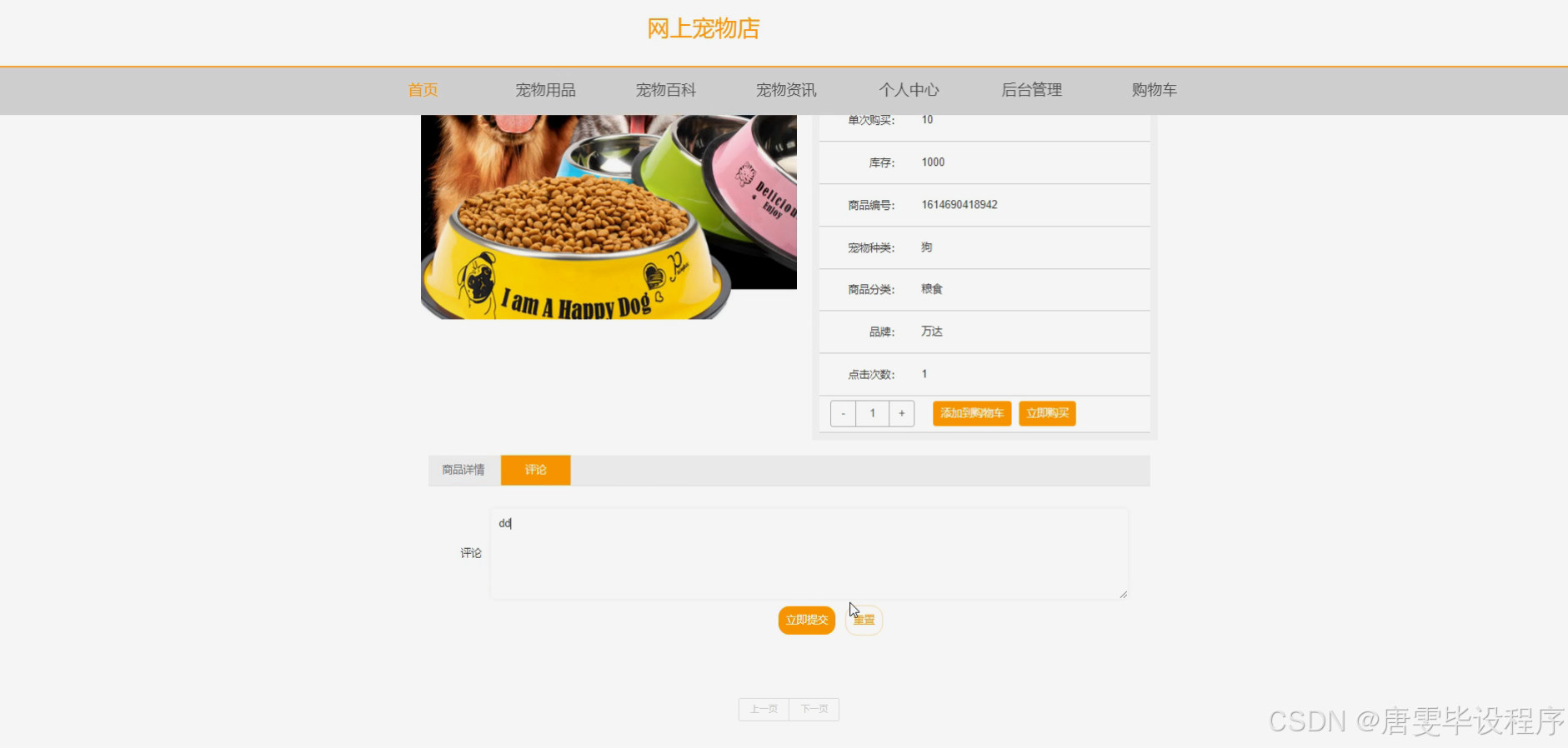 本研究拟解决的主要问题包括:如何构建一个用户友好的网上宠物店系统界面,提高用户的使用体验和满意度;如何实现宠物用品的精准分类和高效搜索,方便用户快速找到所需商品;如何整合和优化宠物百科知识,为用户提供准确、全面的宠物养护指导;如何建立有效的用户互动机制,促进宠物爱好者之间的交流和分享。