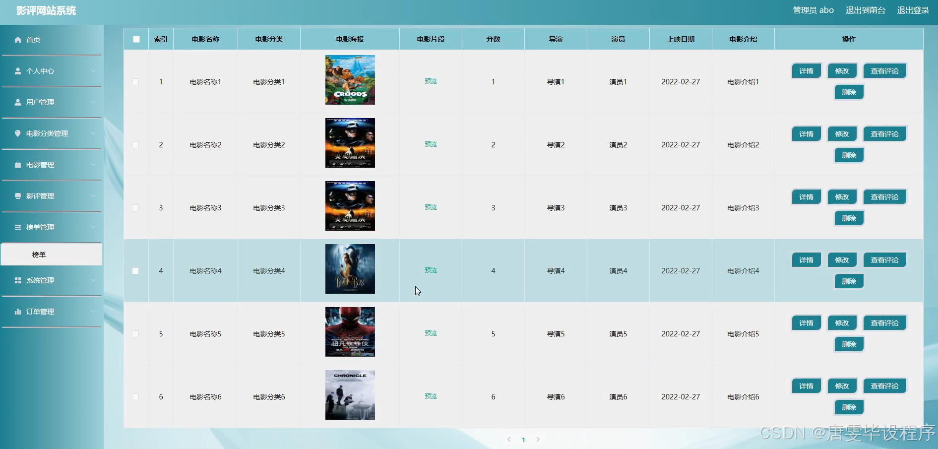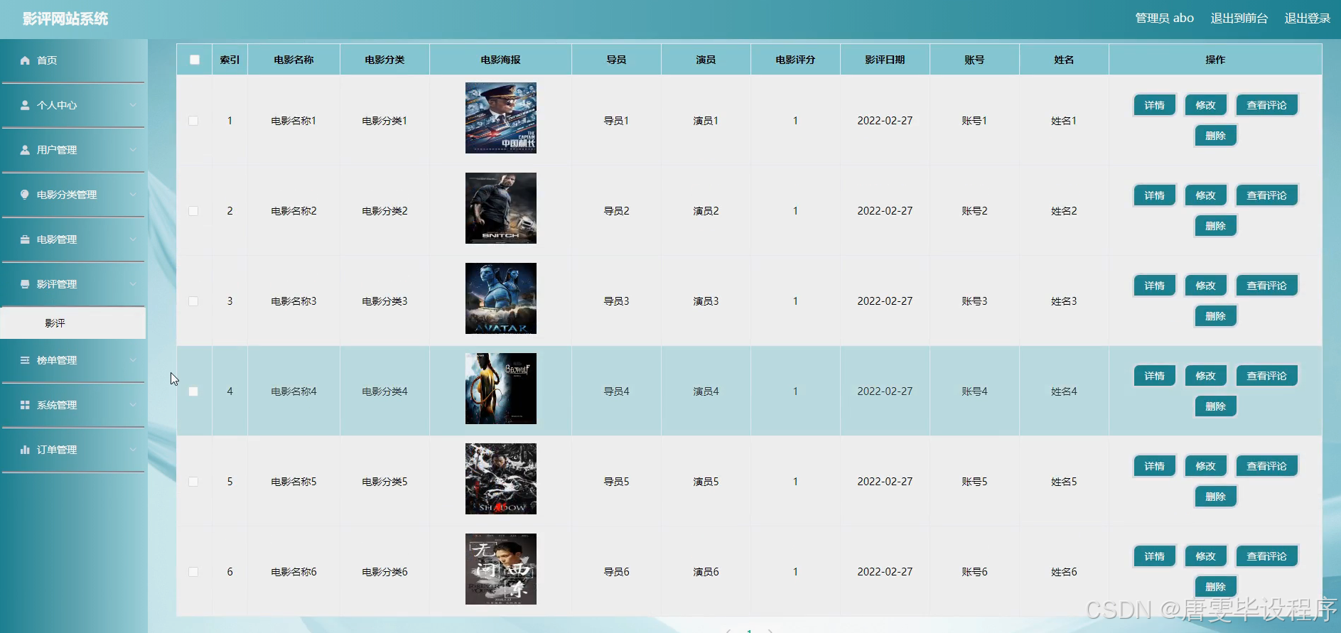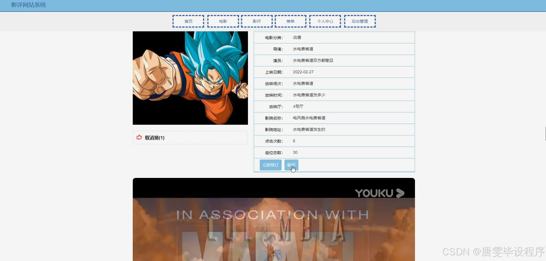 用户管理模块,实现用户的注册、登录、个人信息管理等功能,确保用户身份的安全性和数据的准确性。电影分类模块,根据电影的类型、地区、上映时间等维度,对电影进行细致分类,便于用户快速找到感兴趣的电影。电影详情展示模块,提供电影的详细信息,如导演、演员、剧情简介、预告片等,帮助用户全面了解电影内容。影评撰写与发布模块,允许用户撰写并发布影评,支持文字、图片、视频等多种形式,增强影评的丰富性和可读性。榜单排行模块,根据电影的评分、票房、热度等数据,生成各类榜单,为用户提供观影指南。通过这些功能模块的设计与实现,构建一个功能全面、用户友好的影评网站系统。