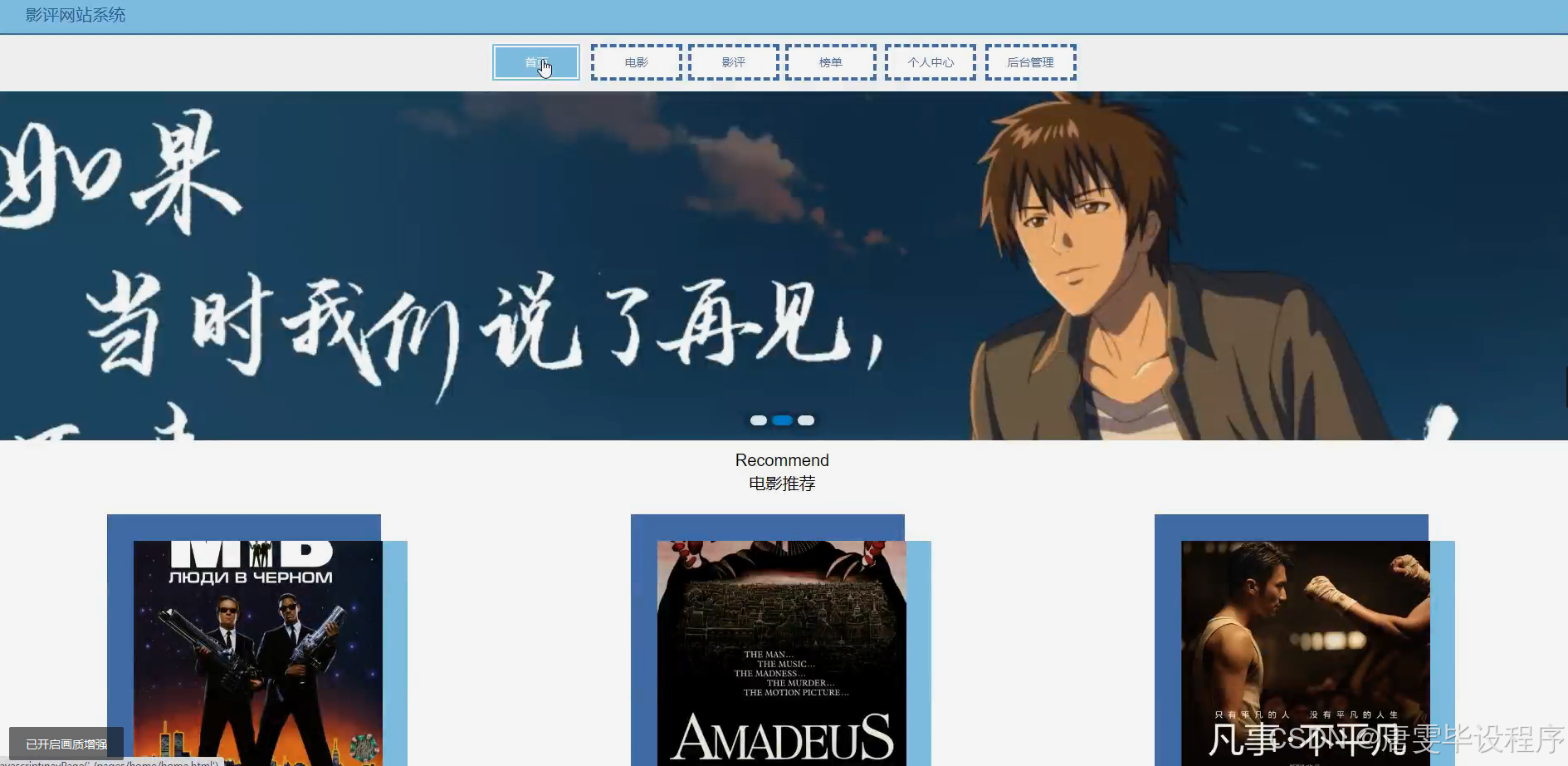 本研究旨在设计并实现一个功能全面的影评网站系统,以满足现代观众对于电影信息查询、影评撰写与分享的需求。通过构建用户管理、电影分类、电影详情展示、影评撰写与发布、榜单排行等核心功能模块,实现用户与电影之间的有效互动,提升用户观影体验的满意度。同时,该系统将注重数据的安全性和隐私保护,确保用户信息的安全可靠。通过本系统的开发,旨在为用户提供一个便捷、高效、安全的影评分享与交流平台。