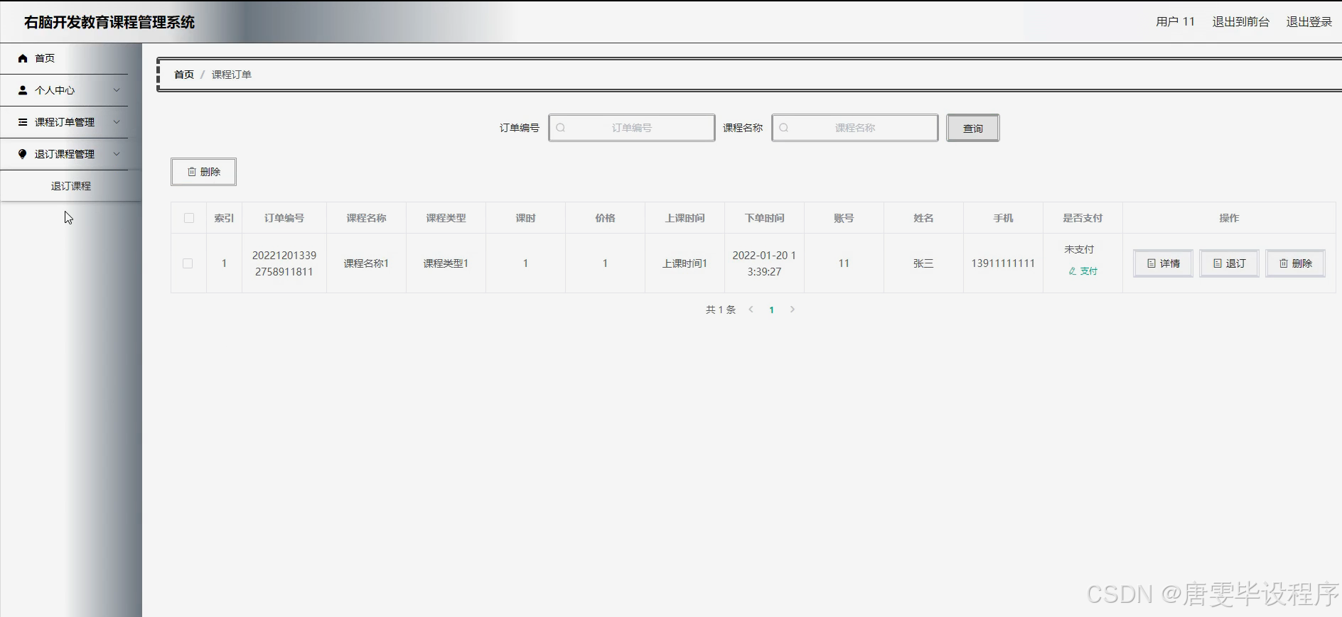 本研究的主要目的是设计并实现一套功能完善的右脑开发教育课程管理系统,以满足教育机构、教师、学生及家长等多方需求。通过该系统,教育机构可以高效地管理课程类型、右脑课程、师资水平等信息,处理课程订单与退订请求;学生可以方便地浏览课程、选择适合自己的学习视频,享受个性化的学习服务。最终,通过系统的应用,促进右脑开发教育的规范化、专业化发展。