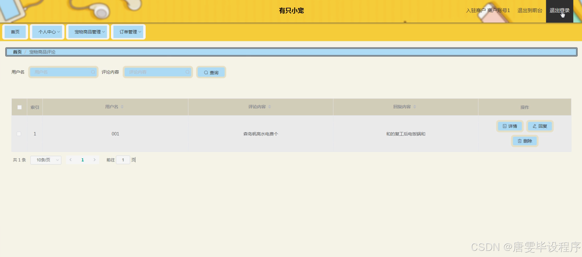 在当今社会,随着人们生活水平的不断提升和情感需求的日益丰富,养宠物已成为众多家庭和个人生活中的重要组成部分。宠物不仅能够提供陪伴,还能在一定程度上缓解生活压力,增进人们的幸福感。然而,随着宠物数量的快速增长,如何高效、便捷地管理宠物相关信息和服务成为了一个亟待解决的问题。因此,设计一款名为“有只小宠”的综合性宠物服务平台显得尤为重要。该平台旨在通过整合用户、入驻商户、线下商家等多方资源,为宠物主人提供一站式的宠物服务体验。